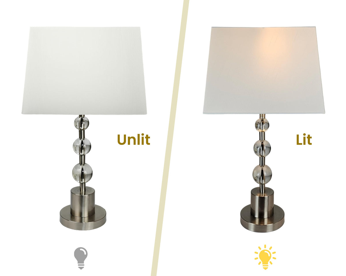 Q: What material is the lamp shade made from?A: The lamp shade is made from high-quality silk shantung exterior fabric and features a premium off-white styrene lining for durability and an elegant look.