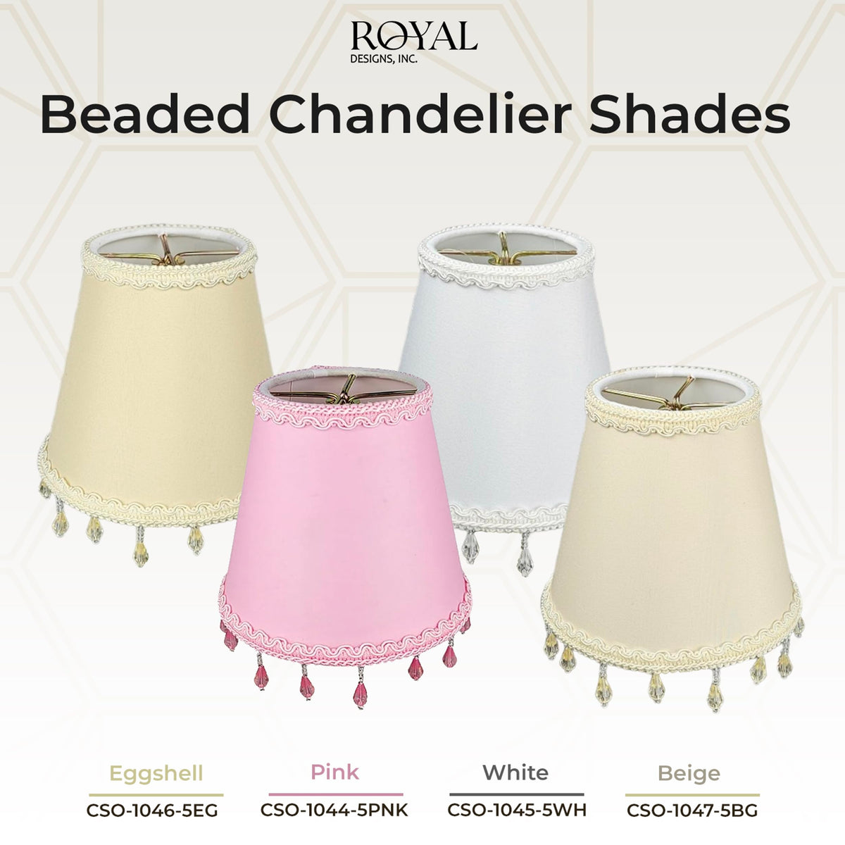 Royal Designs, Inc. Set Of 6 Beaded Empire Chandelier Lamp Shade With Decorative Trim, 3 X 5 X 4.5 Inch, Clip-On, Pink, 6 Pack