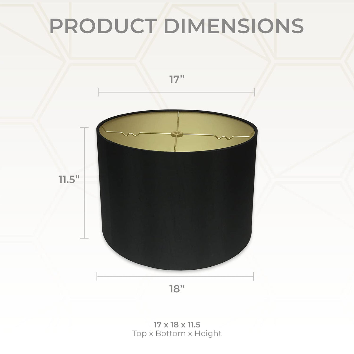 DIMENSION: Our hardback lamp shade measures top 17 inch, bottom 18 inch, height 11.5 inch. Shades with 9"+ top diameter have a v-notch fitter for use with a 6" or 8" reflector bowl. | MATERIAL: Made from silk-type hardback shantung exterior fabric and premium gold styrene lining. | METAL FRAME: Heavy grade rust-resistant 1.5mm metal frame that is thicker than typical standard lamp shade. | CLEAN DESIGN: Our clean design simple lamp shade easily suit into any interior space and decorative themes. The shade has a standard lamp shade washer with a brass-finish and a spider fitter. | APPLICATION: This lampshade is suitable for table lamps, accent lamps, vintage lamps, candle stick lamps and kid's room lamps.