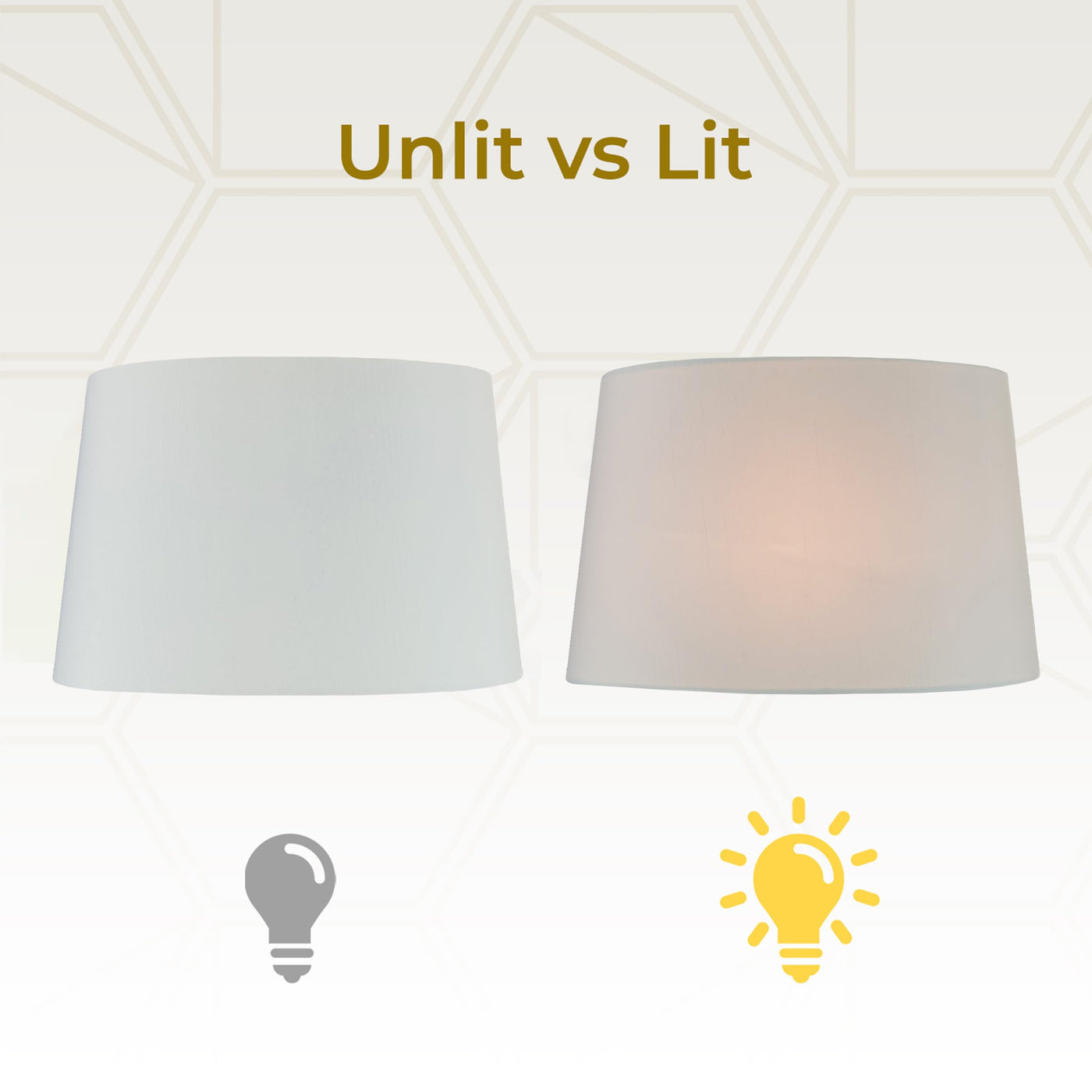 Q: What material is the lamp shade made from?A: The lamp shade is made from high-quality silk-type shantung fabric with a premium off-white styrene lining, providing both elegance and durability.