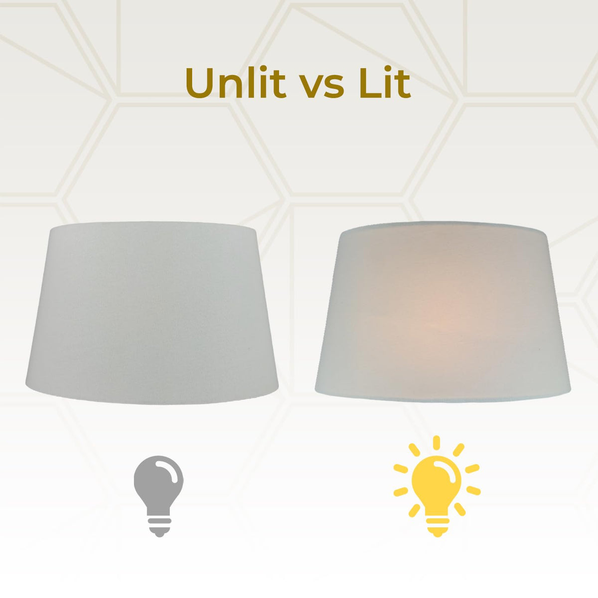 Q: What material is the lamp shade made from?A: The lamp shade features a linen textured exterior fabric along with a premium off-white styrene lining for durability and style.