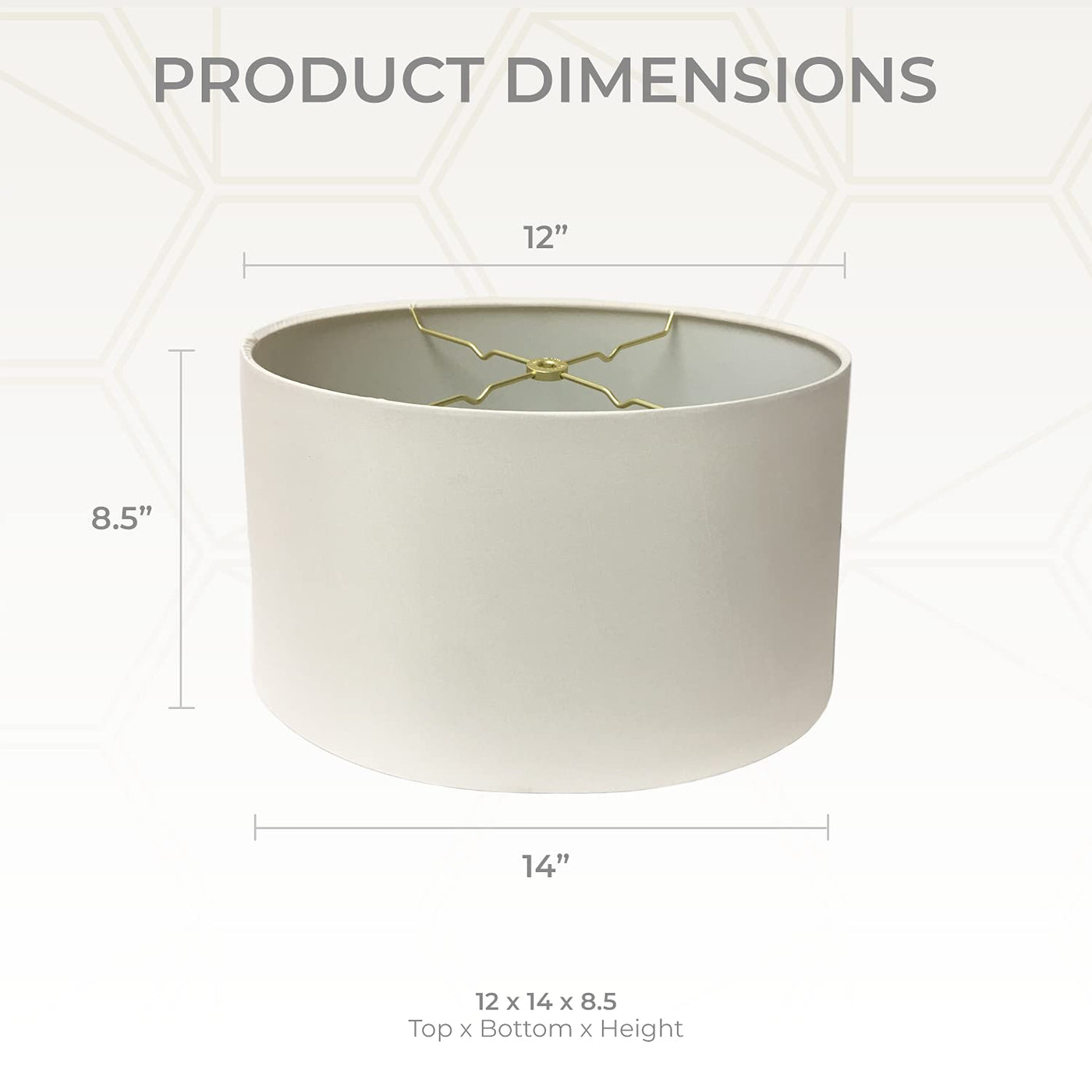 DIMENSION: Our hardback lamp shade measures top (12 x 8) inch, bottom (14 x 10) inch, height 8.5 inch. Shades with 9"+ top diameter have a v-notch fitter for use with a 6" or 8" reflector bowl. | MATERIAL: Made from silk-type hardback shantung exterior fabric and premium off-white styrene lining. | METAL FRAME: Heavy grade rust-resistant 1.5mm metal frame that is thicker than typical standard lamp shade. | CLEAN DESIGN: Our clean design simple lamp shade easily suit into any interior space and decorative themes. The shade has a standard lamp shade washer with a brass-finish and a spider fitter. | APPLICATION: This lampshade is suitable for table lamps, accent lamps, vintage lamps, candle stick lamps and kid's room lamps.