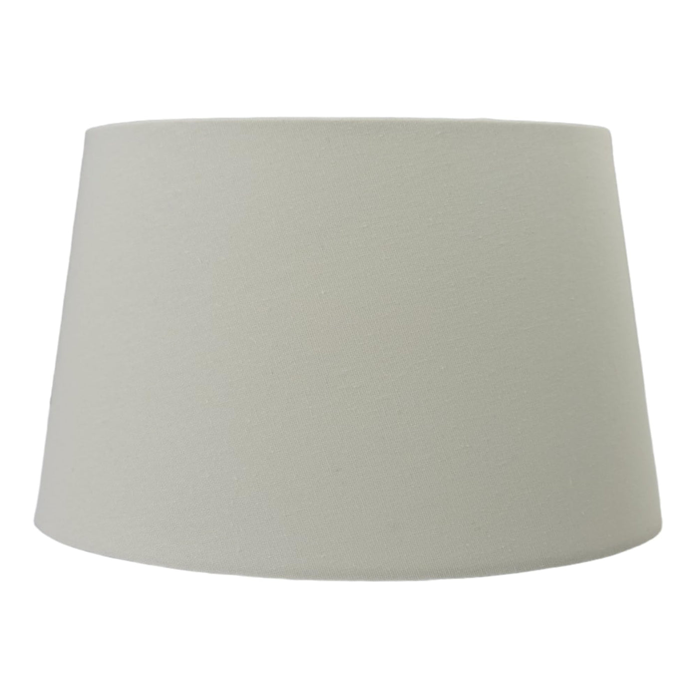 Q: What materials are used in the construction of this lamp shade?A: This lamp shade is made from a linen-textured exterior fabric with premium off-white styrene lining, and it features a heavy-grade rust-resistant metal frame.