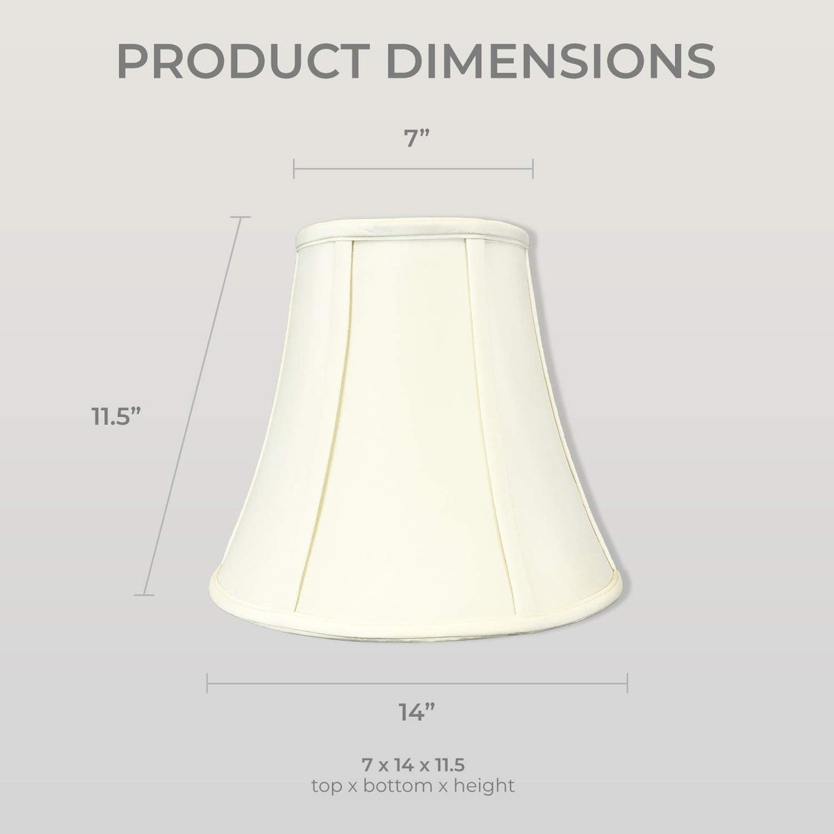 Dimensions: 7 X 14 X 11.5 (Top Diameter X Bottom Diameter X Slant Height) | Materials: Hand-Tailored Silk-Type Shantung Or Linen Fabric With Softback Off-White Poly-Cotton Lining; Black Shades Feature Gold Lining | Easy To Use: Designed With A Standard Spider Fitter And Brass-Finish Washer; Compatible With Most Harp-And-Finial Setups | Traditional Design: Full Bell Silhouette With Generous Curve Enhances Medium To Large Lamp Profiles | Application: Designed For Classic Table Lamps, Statement Bases, Or Updated Vintage Pieces In Bedrooms Or Sitting Rooms