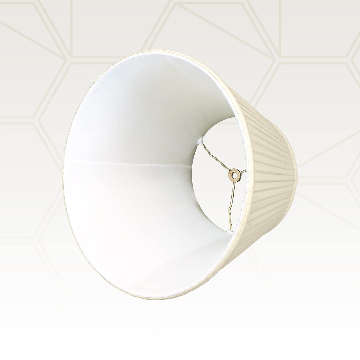 Q: What materials are used in the construction of this lamp shade?A: This lamp shade is made from silk-type shantung fabric and features premium off-white styrene lining, ensuring both elegance and durability.