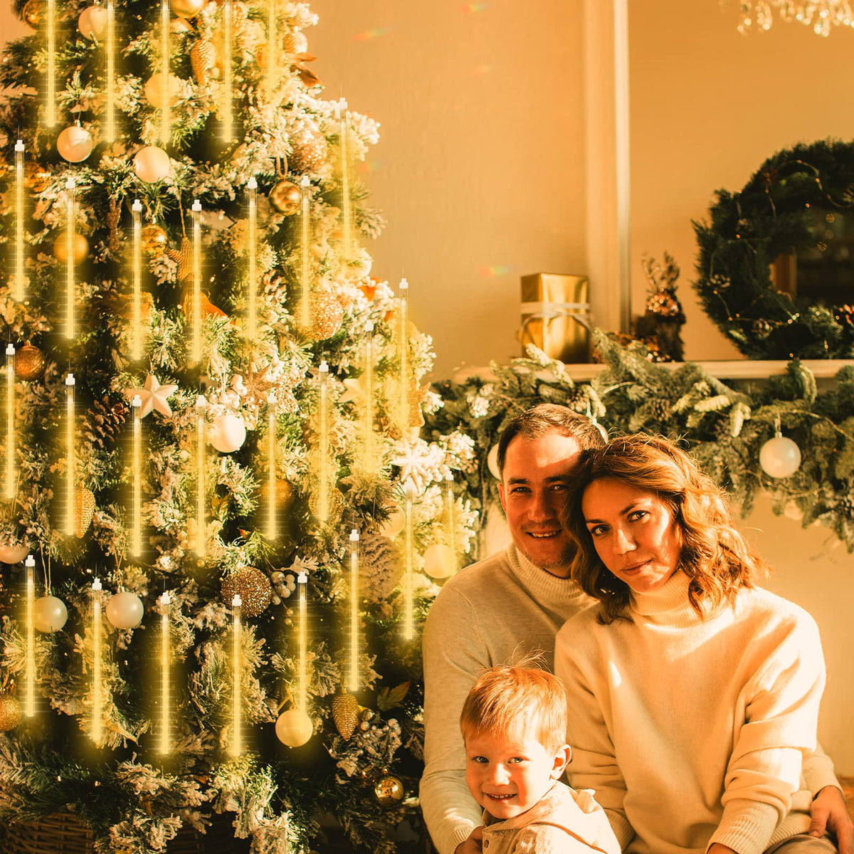 Roytong Christmas Lights Outdoor, Meteor Shower Lights 12 Inch 10 Tube 360 Led Falling Rain Snow Falling Icicle Cascading Lights
