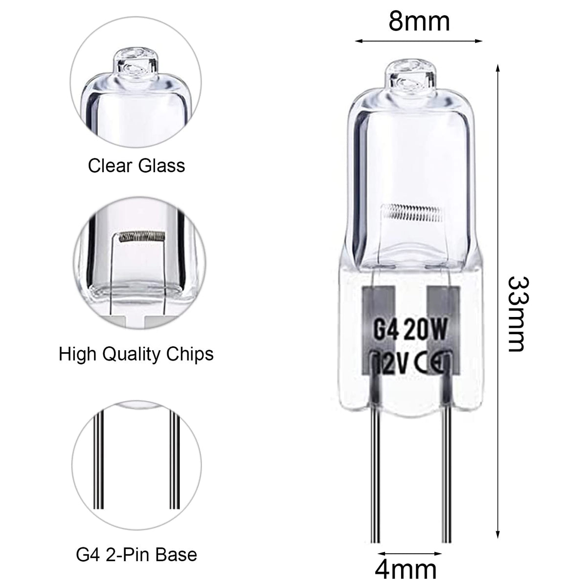 Rpanle G4 Bulb,12V 20W Halogen Light Bulbs 2 Pin, For Landscape Under Cabinet Puck Light Track Lighting Dimmable (10 Pcs)