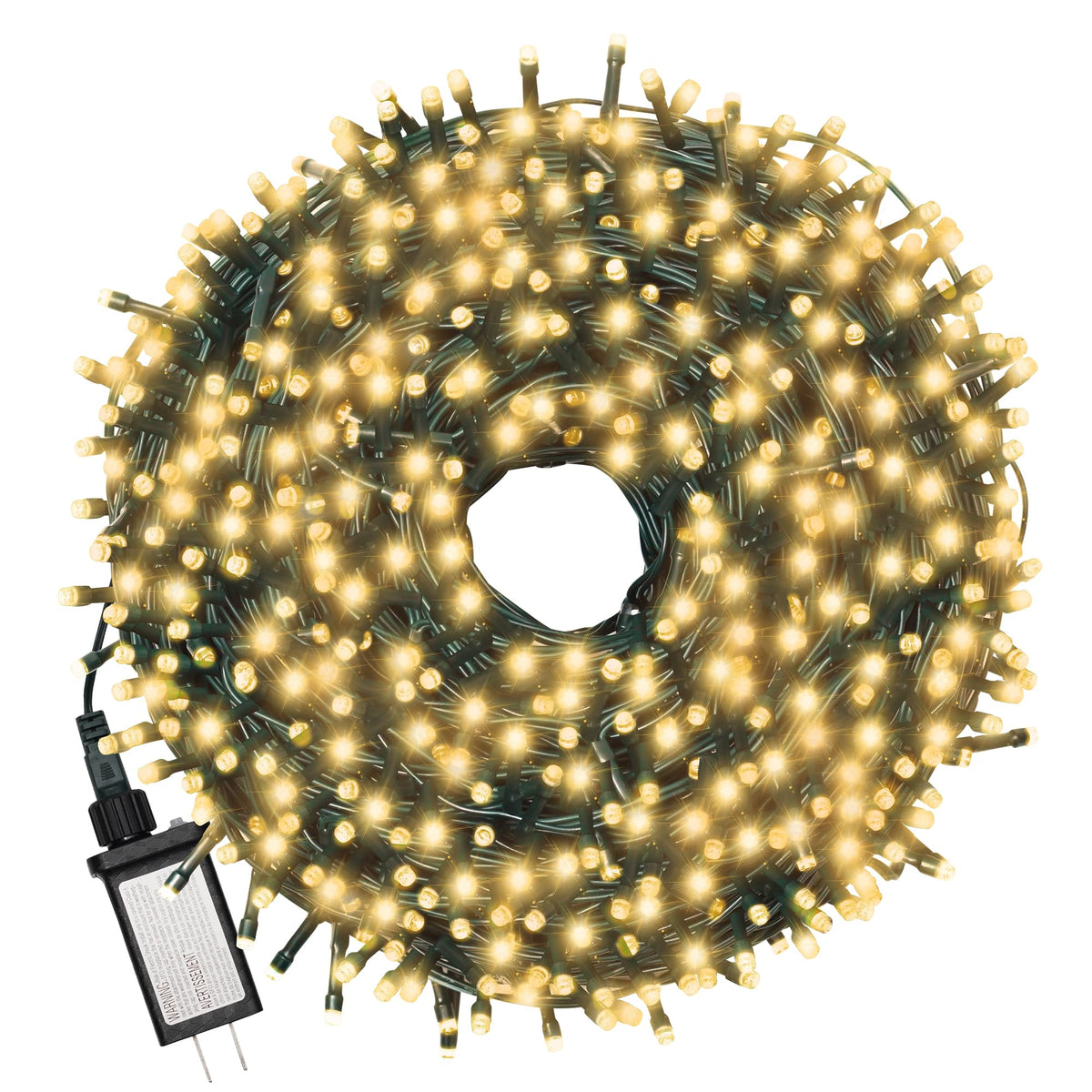 Rpgt Christmas Light 100 Leds 41Ft Green Cable Wire Fairy String Twinkle Lights Plug In 12 Modes For Xmas Tree, Party, Indoor,Outdoor, Garden, Wedding, Home Decoration (Warm White)