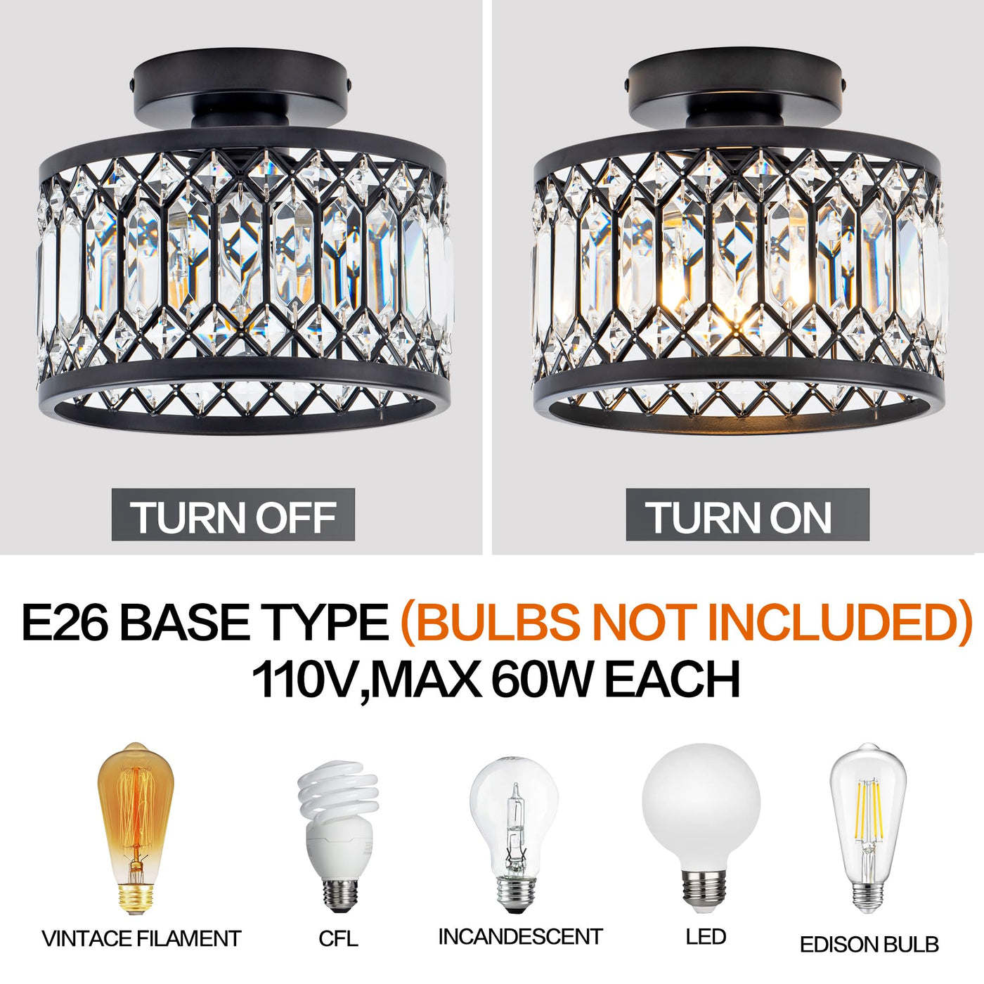 Rpzloila Crystal Ceiling Light Fixture, Modern Semi Flush Mount, Black, Model 8802-1X-BK, for Kitchen, Bedroom, Bathroom, Entryway