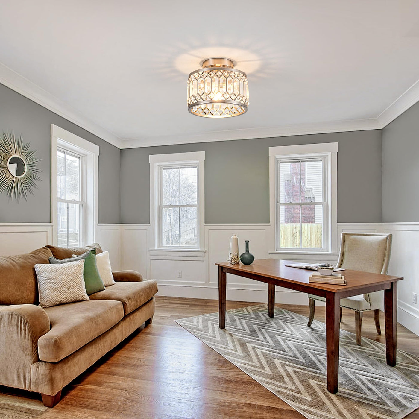 Rpzloila Crystal Semi Flush Mount Ceiling Light, Crystal Chandelier Modern Ceiling Light Fixture For Bedroom Hallway Entryway Bathroom Kitchen E26 Base