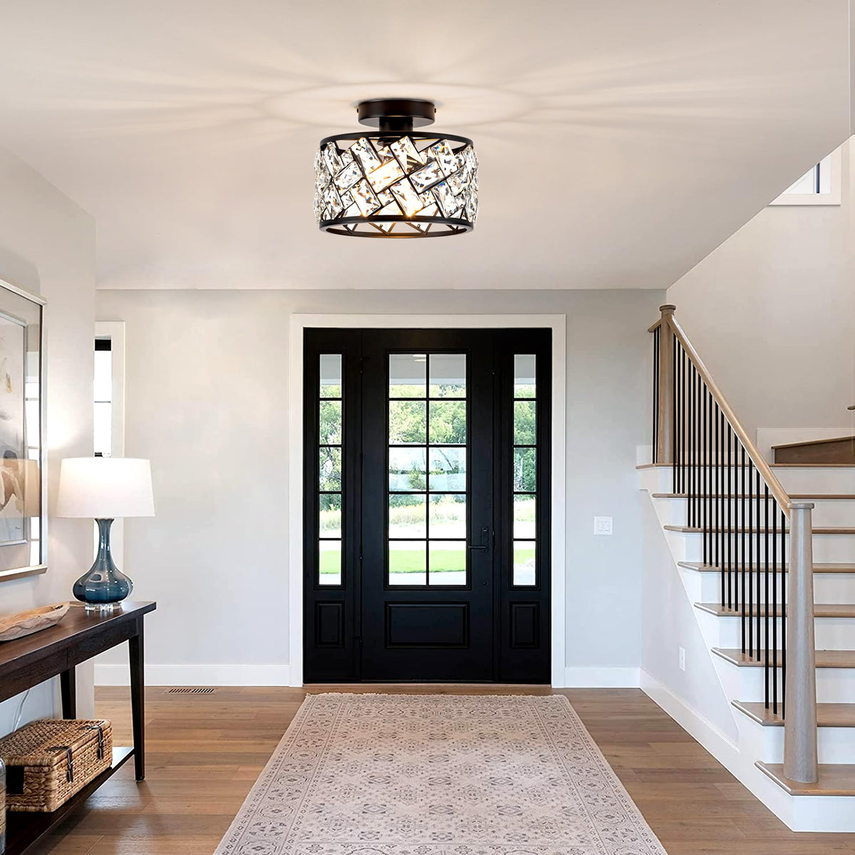 Modern Crystal Semi Flush Mount Design: Combines a sleek black metal frame with a beautiful crystal shade for a sophisticated look.