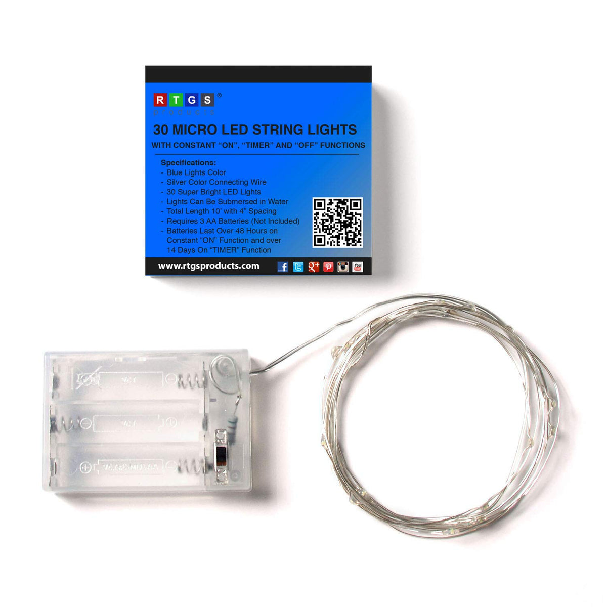 Rtgs 30 Leds Blue Color String Lights Silver Wire Indoor And Outdoor 9.5 Feet Firefly Starry Fairy Lights Battery Powered For Diy, Christmas, Holidays, Party, Bedroom And Centerpieces
