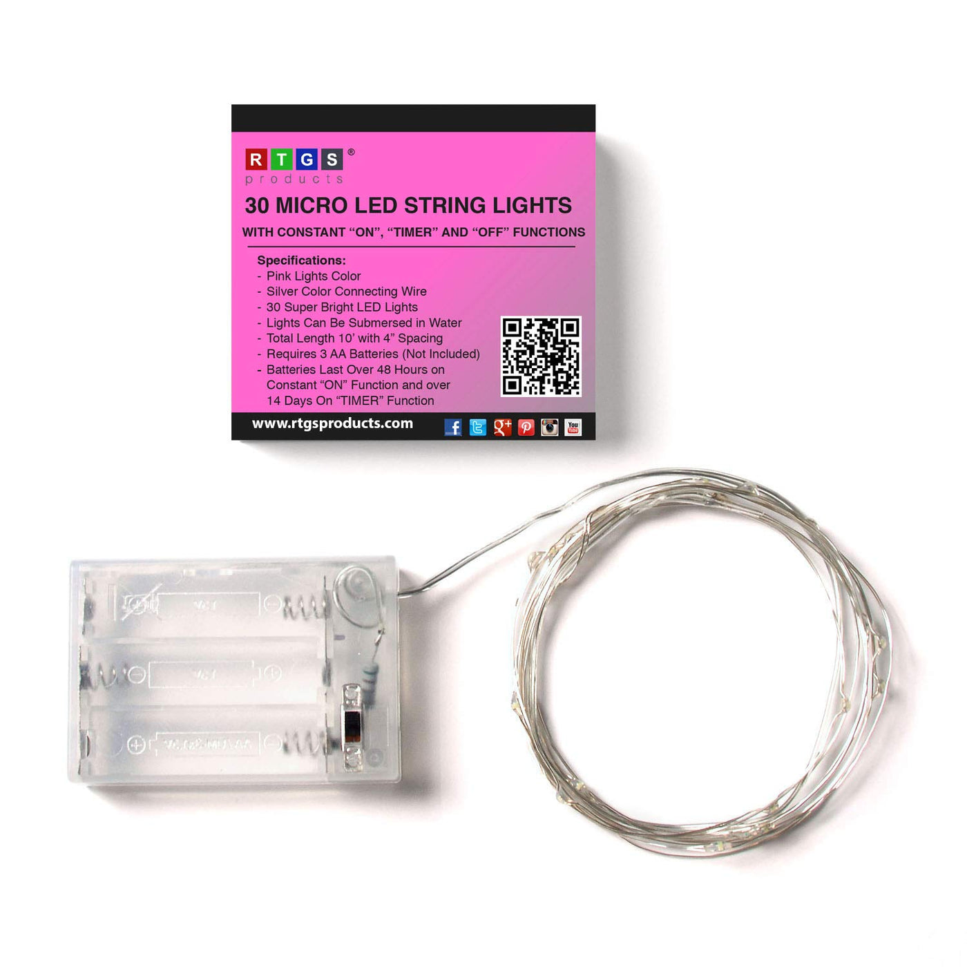 Rtgs 30 Leds Pink Color String Lights Silver Wire Indoor And Outdoor 9.5 Feet Firefly Starry Fairy Lights Battery Powered For Diy, Christmas, Holidays, Party, Bedroom And Centerpieces