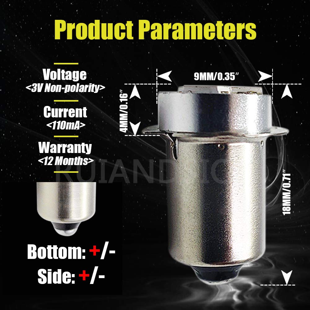 Ruiandsion 2pcs P13.5S LED Bulb 3V White 2835 3SMD Chips LED Bulb Upgrade for Flashlights Torch Light, Non-Polarity