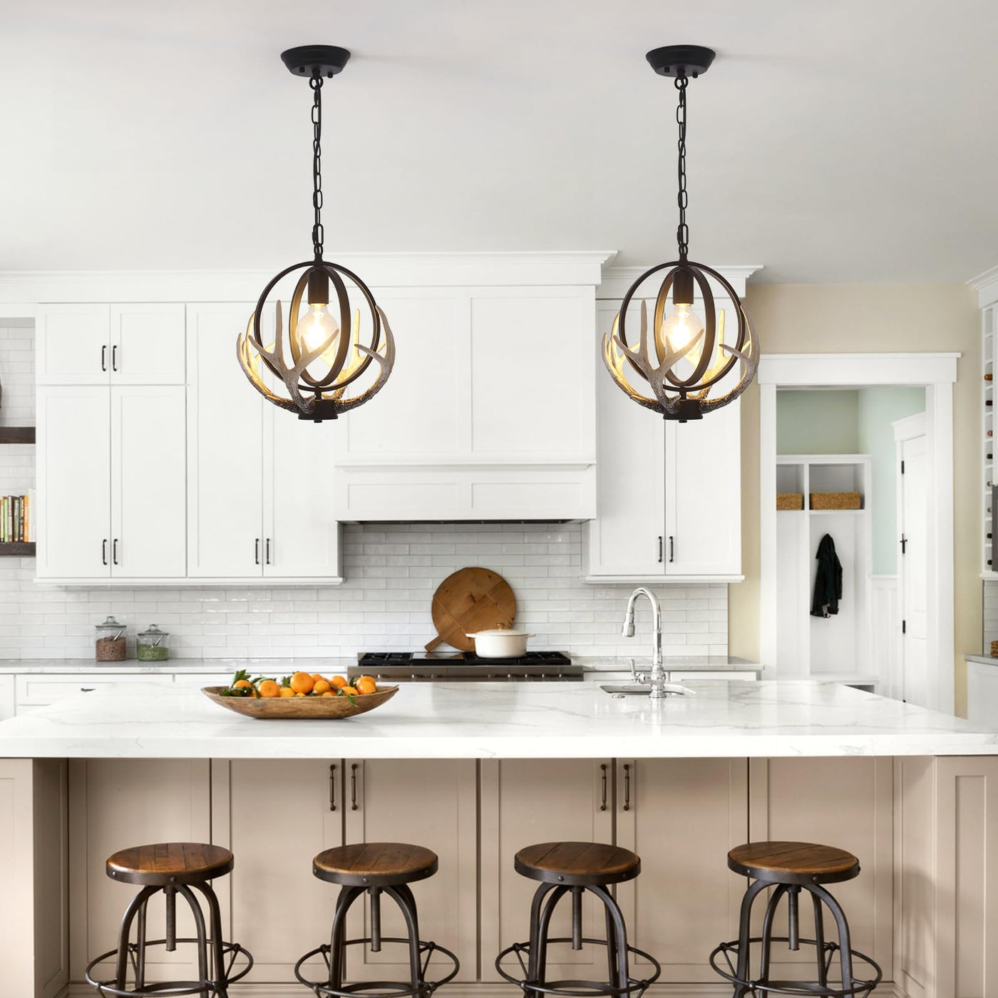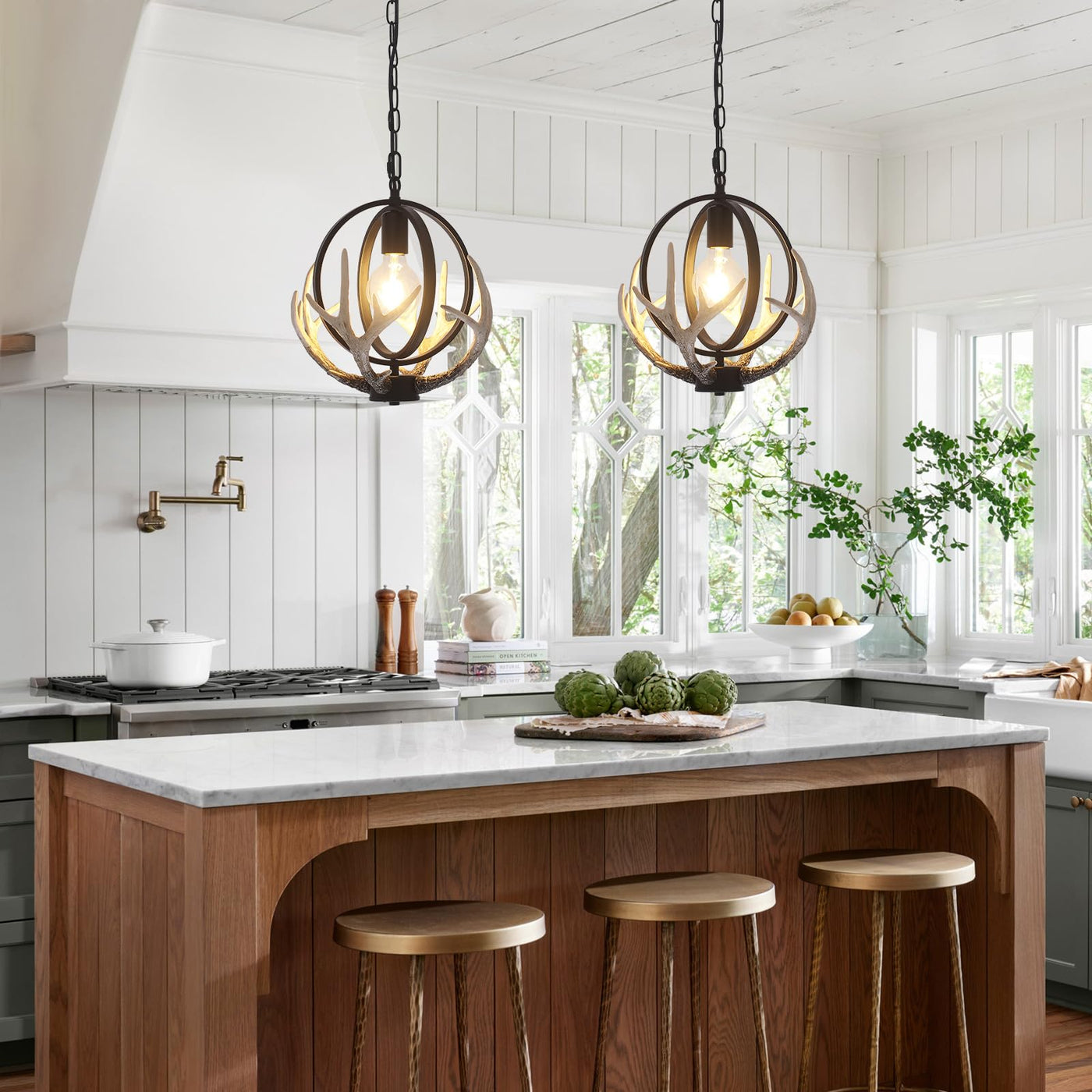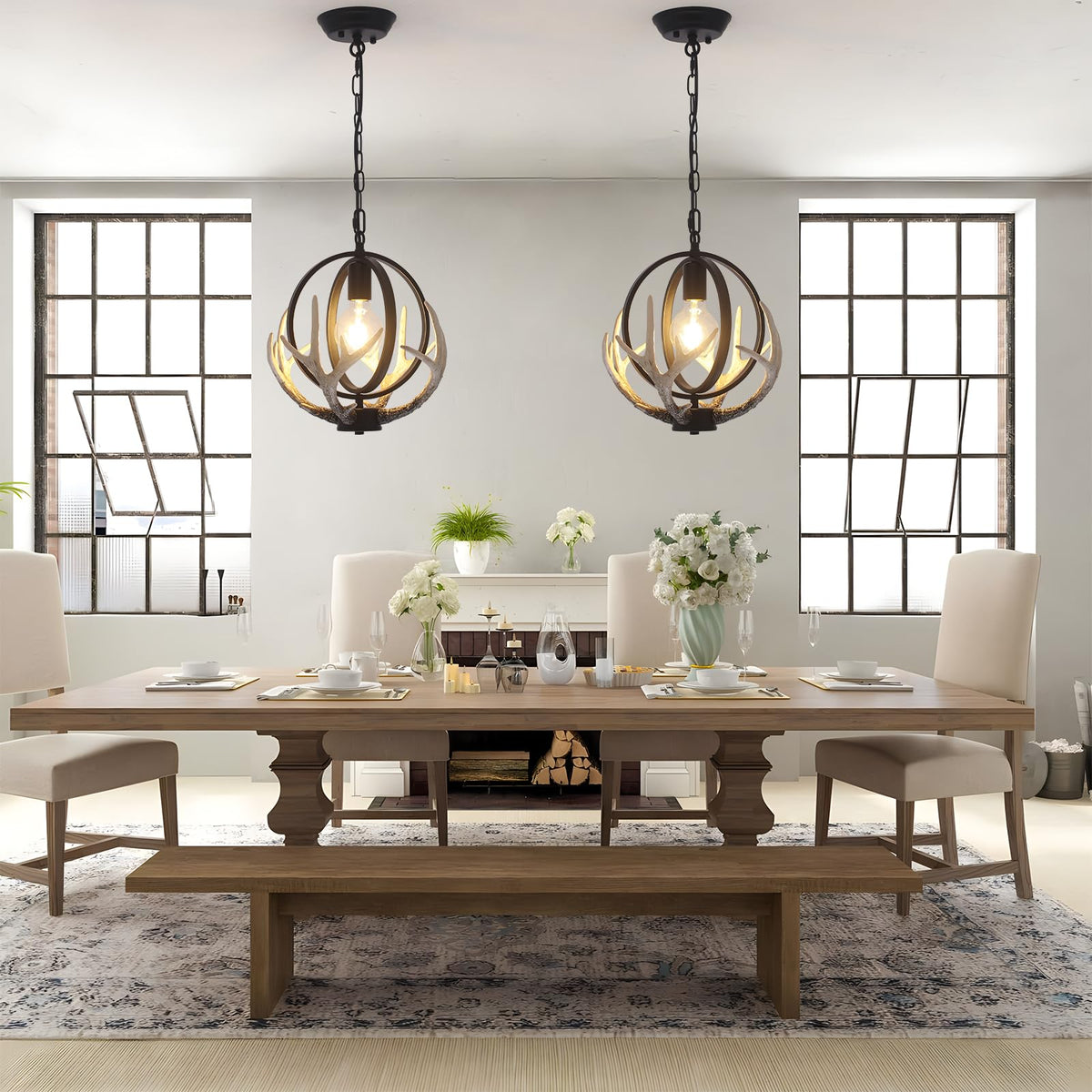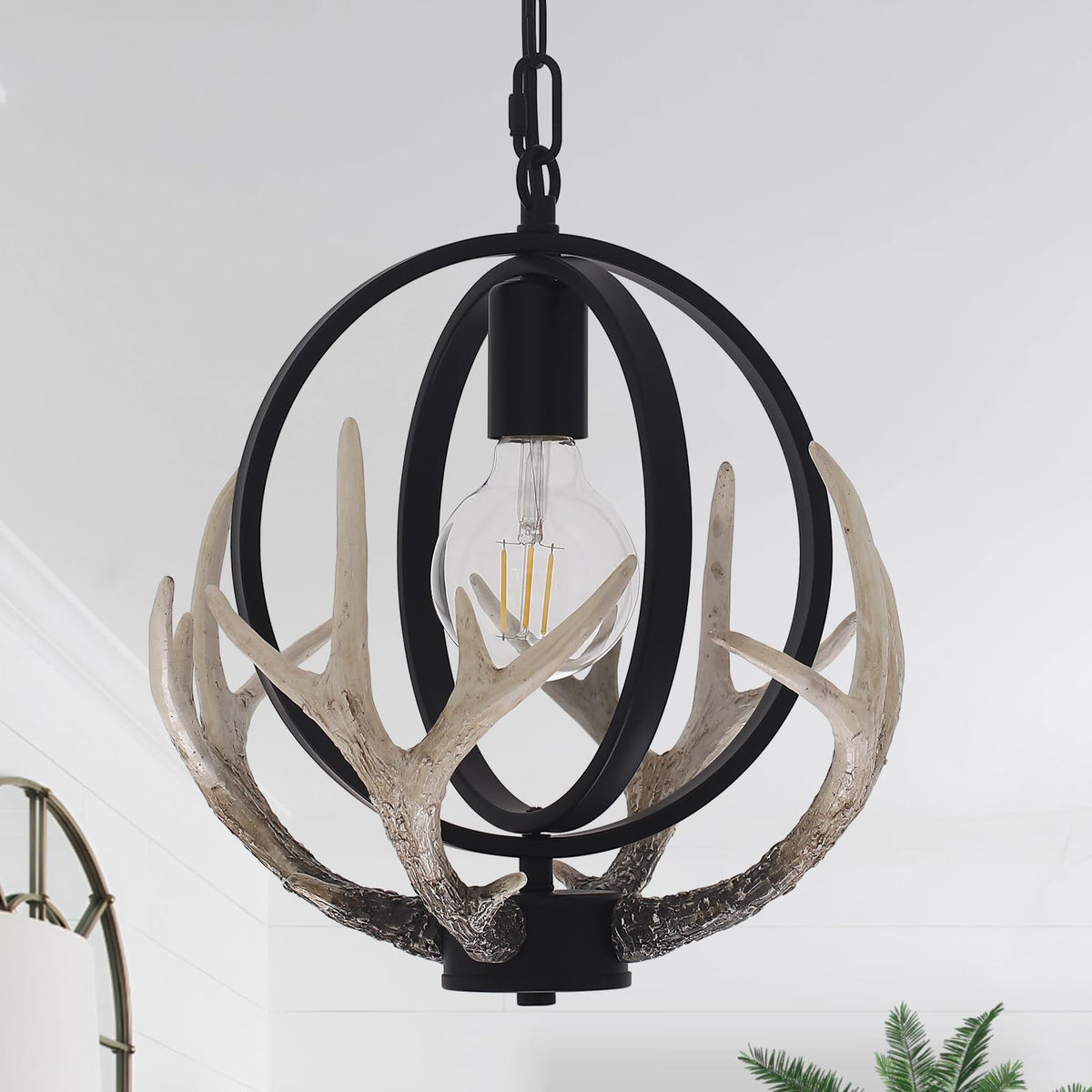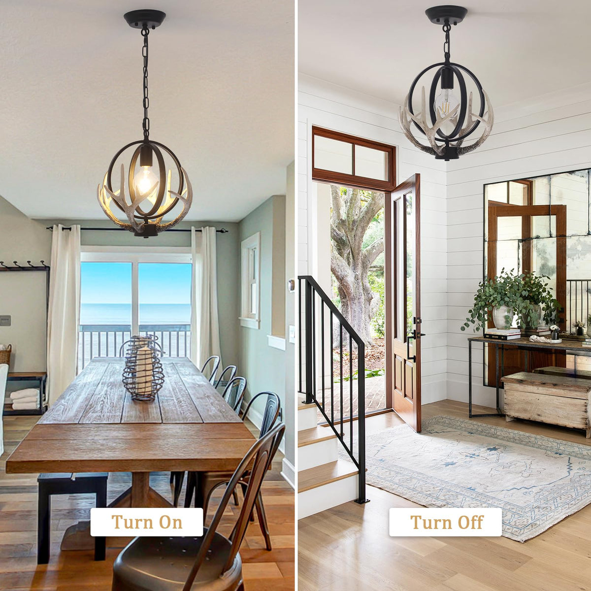 Antler Chandelier 1-Light Rustic Farmhouse Chandeliers for Dining Room Light Fixtures Over Table with 4 Resin Deer and Metal Globe Chandelier Vintage Kitchen Island Lighting Pendant Light Fixtures Ceiling Hanging for Hallway Foyer Entryway Living Room Bedroom