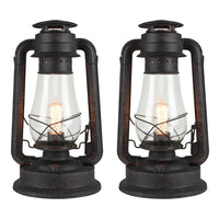 Rustic Farmhouse Lantern Table Lamp: Dimmable, Edison Bulb, Line Cord Dimmer - Large Body, Rustic Finish - Set Of Two - Ul Usa/U