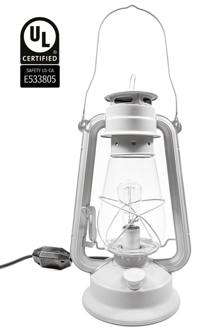 Rustic Farmhouse Lantern Table Lamp: Dimmable, Edison Bulb, Line Cord Dimmer - Large Body, Rustic Finish, Ul Usa/Ulc Canada Safe