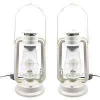 Rustic Farmhouse Lantern Table Lamp: Dimmable, Edison Bulb, Line Cord Dimmer - Large Body, White Finish - Set Of Two - Ul Usa/Ul