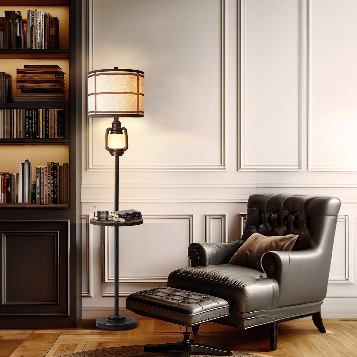 Q: What type of bulbs are included with the Rustic Farmhouse Floor Lamp?A: This floor lamp includes both a 9-watt bulb and a 4-watt bulb, which are designed to emit soft, warm light that enhances the ambiance of your room without needing to purchase additional bulbs.