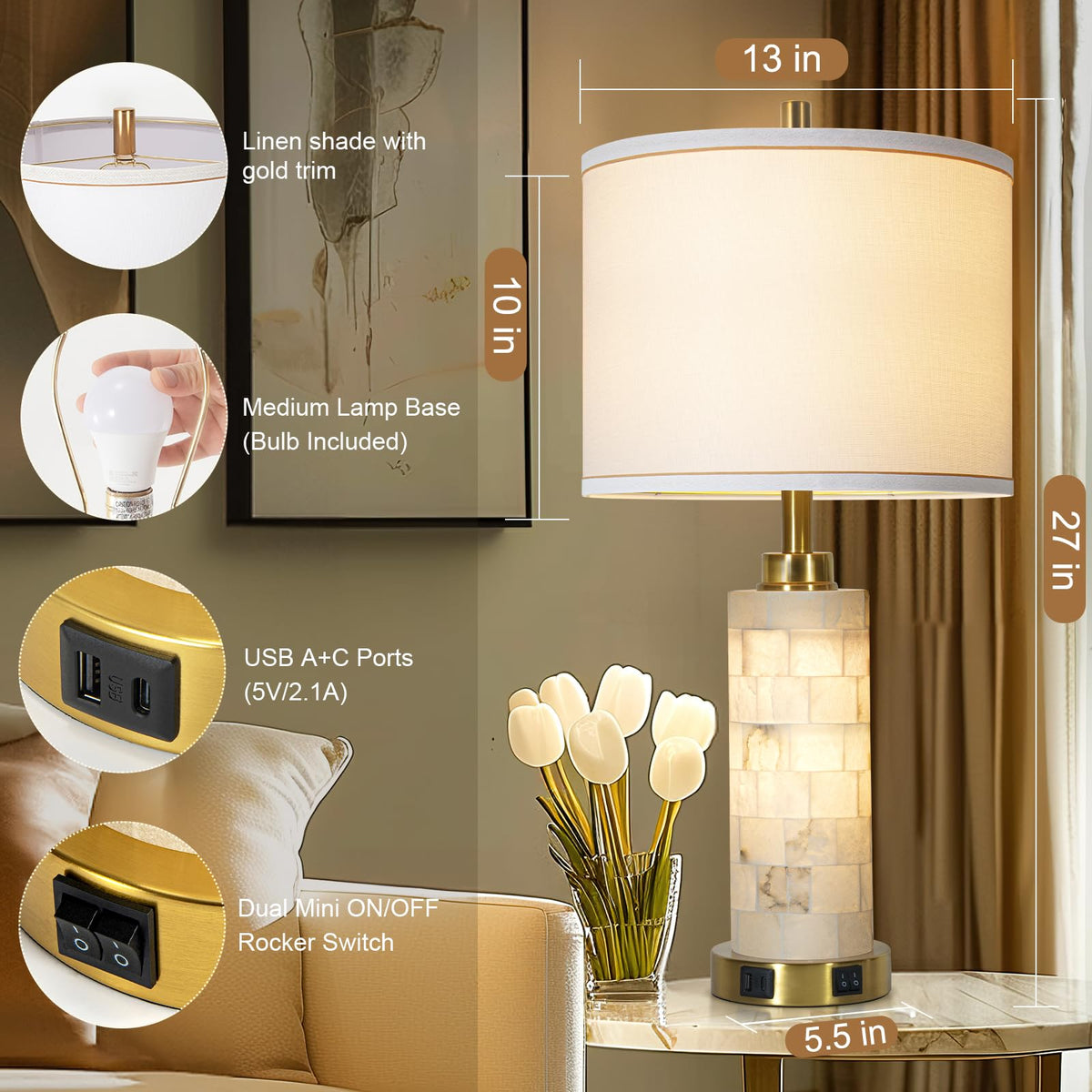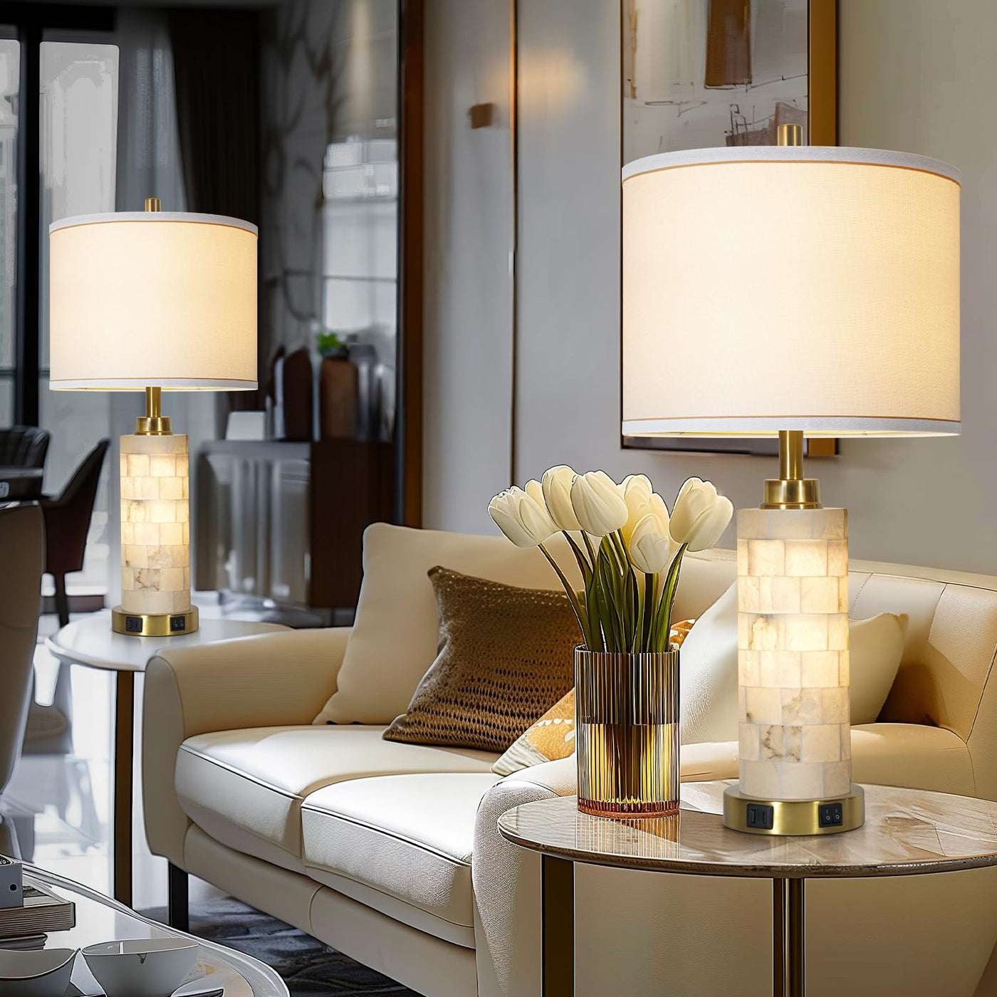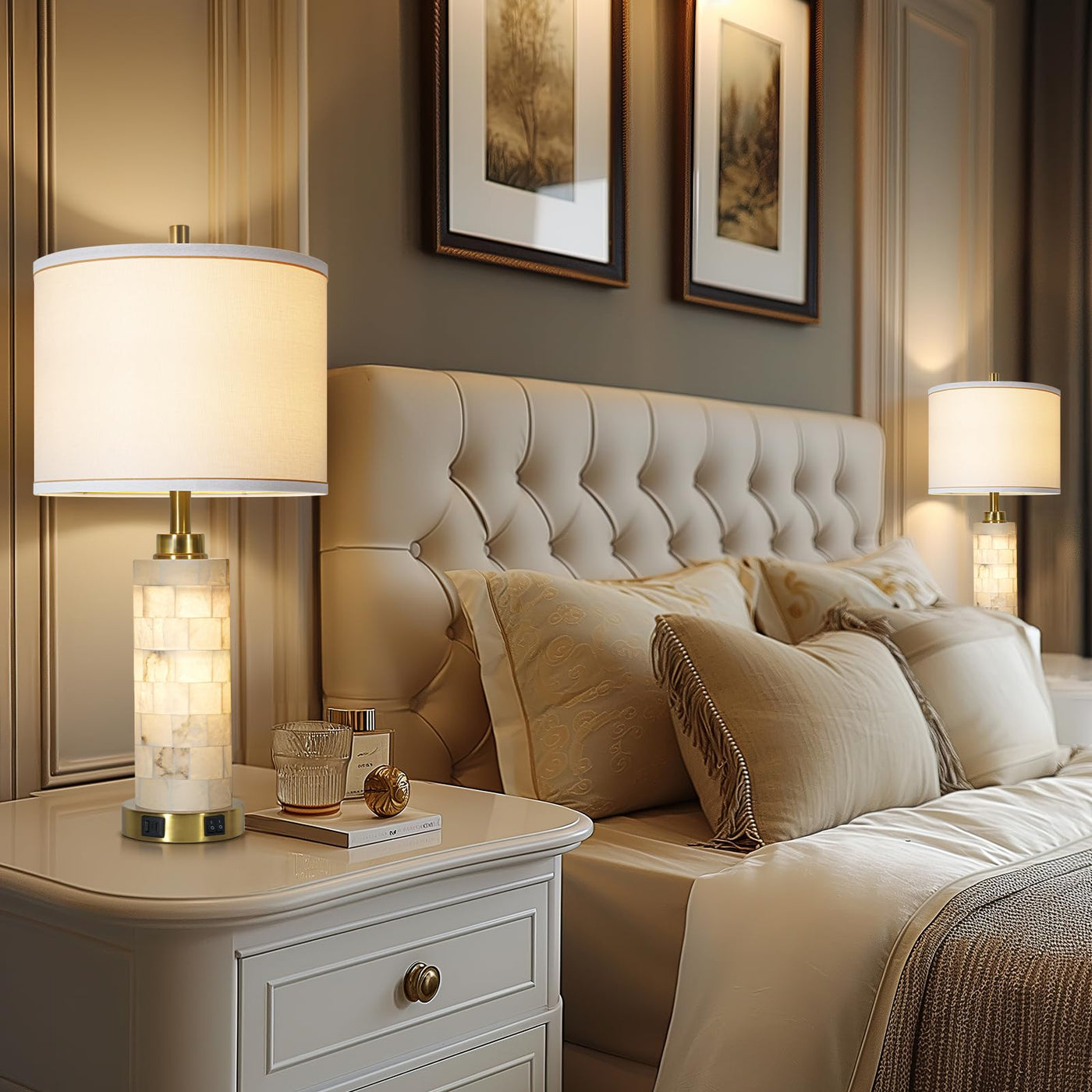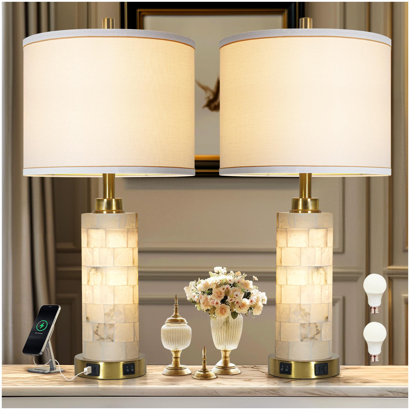 Our Lamp Body Is Cut Into A Trapezoidal Shape With Natural Spanish Alabaster And Then Spliced Into A Hexagonal Hollow Cylinder. The Night Light Is Set To Emit A Warm Light In The Environment. Set The Usb Port At The Bottom Of The Dark Gold To Charge Two Mobile Devices At The Same Time. With The Dual Mini Switch, You Can Adjust The Light According To The Mood Or For Different Occasions. This Set Of Two Lamps May Be The Best Way To Decorate Your Living Room, Bedroom Or Even Office.