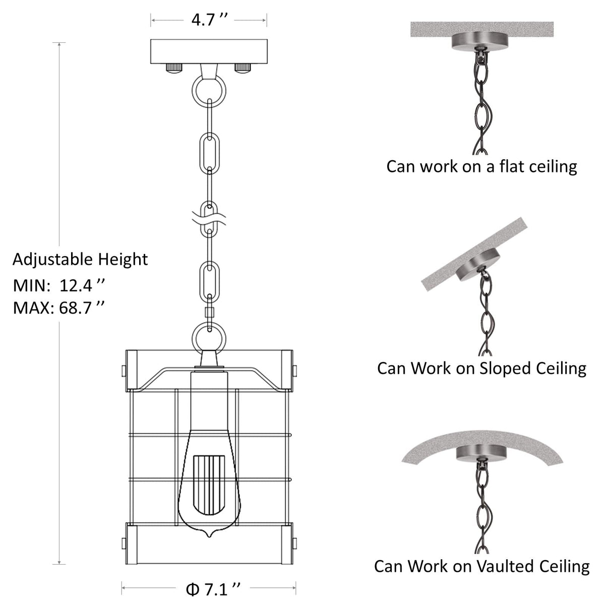Q: Can the height of the pendant light be adjusted?A: Yes, the Rustic Pendant Light features an adjustable chain that allows you to customize the height according to your preferences, with a maximum length of 55 inches.