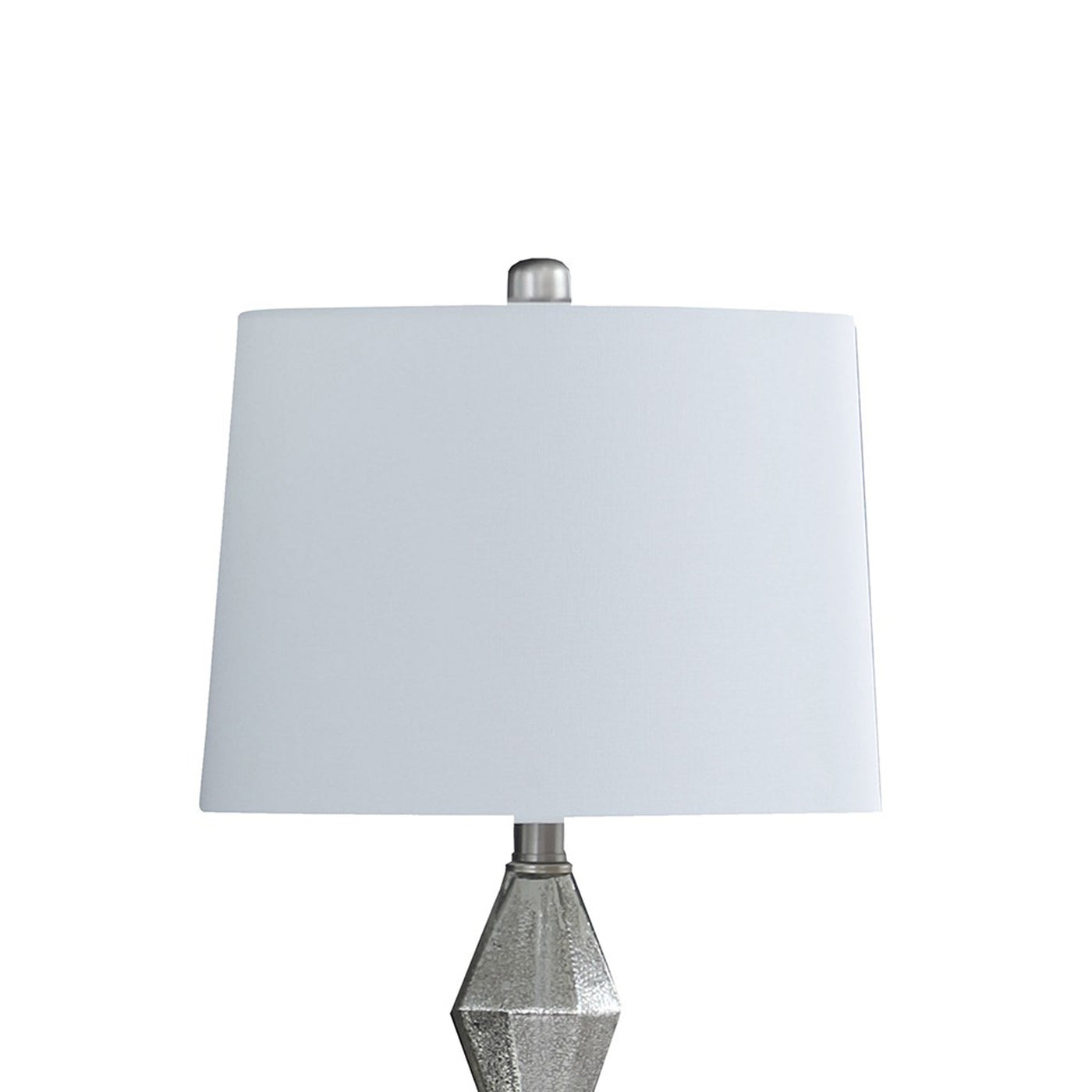 Crafted with an eye for both the classy and the classical, this silver finished table lamp is a distinctly sophisticated accent to any living room, office, or bedroom. The sturdy, geometrically designed glass pedestal base provides beauty and stability, while the finial top adds a subtle vintage look to an already eye catching lighting option. Check out our Ruth collection for matching items.
