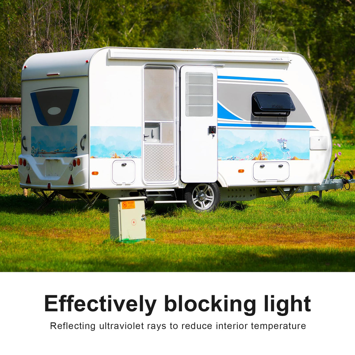 Crafted from premium waterproof thickened Oxford fabric, the RV blackout window cover is augmented with a reflective silver coating. This unique combination effectively blocks light while enhancing insulation. Experience improved comfort as the reflective silver fabric keeps the interior cool by deflecting sunlight, and the waterproof feature adds durability for long-lasting use.