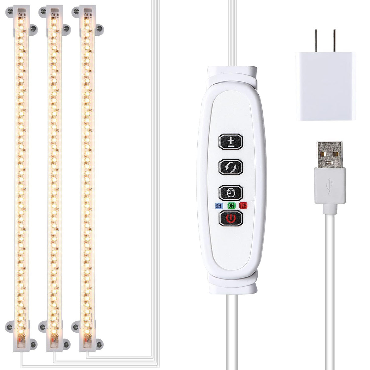 Rwntao Led Grow Light Strips, Full Spectrum Plant Growing Lights For Indoor Plants 3000K, 144 Leds Plant Lamp With 3/9/12H Timer, 10 Dimmable Levels, 3 Head 13 Inches