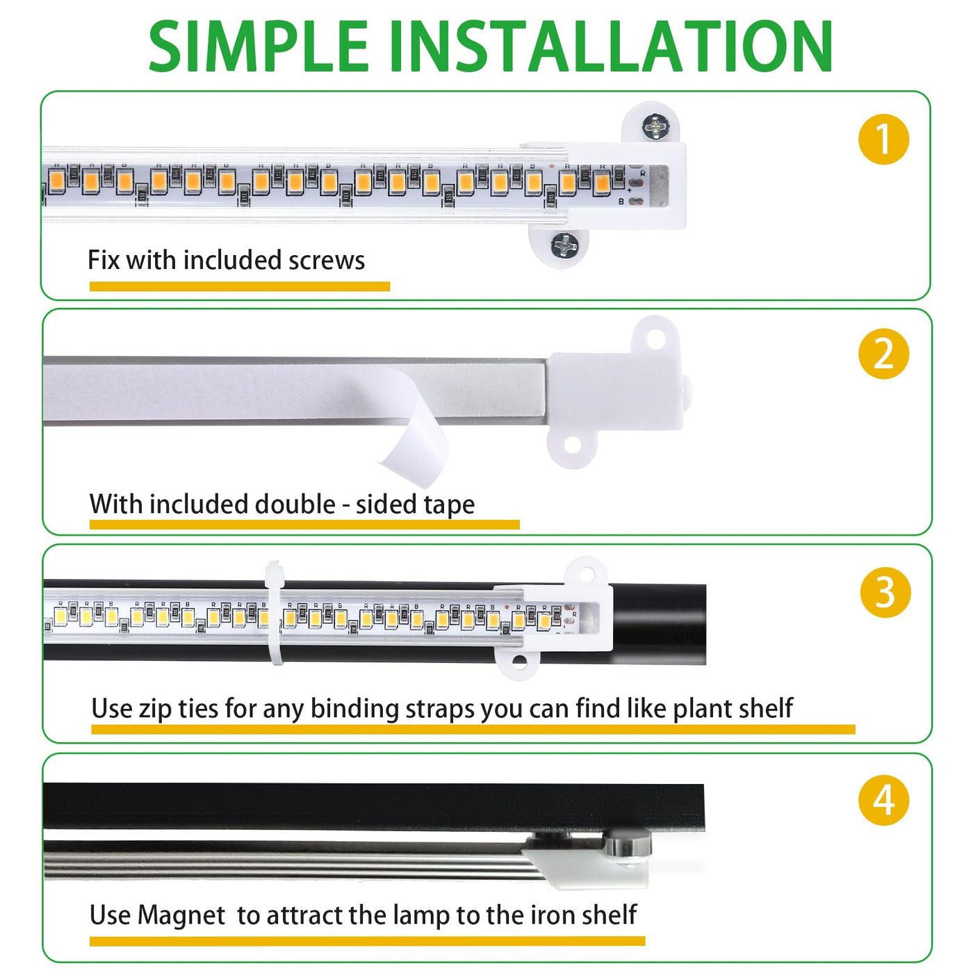 Q: Is the RWNTAO LED Grow Light easy to install?A: Yes, the grow light is designed for easy installation and comes with multiple mounting options, including screws, ties, double-sided tape, and magnets. Its compact design fits various fixtures and surfaces, making it convenient for use in homes, offices, and greenhouses.