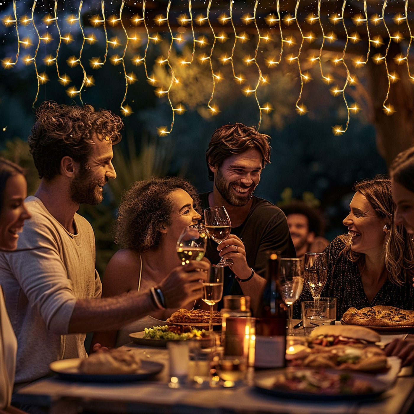 Q: Can I connect multiple strings of these icicle lights together?A: Yes, you can connect up to 2 strings of Ryblgled solar icicle lights together for a more extended display, perfect for larger areas.