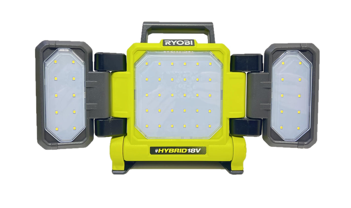 3,000 Lumens Of Led Light Output 360 Light Coverage Over 225 One+ Tools - All Work With Any Ryobi 18V One+ Battery Expand Your Ryobi 18V One+ System With The Ryobi 18V Hybrid Led Panel Light. Light Up Any Jobsite, Work Area, Or Outdoor Space With 3,000 Lumens Of Light Output. This Light Is Customizable With 360 Rotating Side Panels And 150 Pivoting Front Panels For Ultimate User Control And Light Coverage. Maximize Hands Free Use With Its Tripod Mounting Capability And Integrated Key Holes. This Light Offers A Portable Pass-Through Handle And Folds Together For Easy Storage In Between Uses. Utilize This Lights 3 Settings (High/Medium/Low) For A Variety Of Applications. Best Of All, It Is Part Of The Ryobi One+ System Of Over 225 Cordless Tools That All Work On The Same Battery Platform. This 18V Panel Light Is Backed By The Ryobi 3-Year Manufacturers Warranty. Battery And Charger Sold Separately.