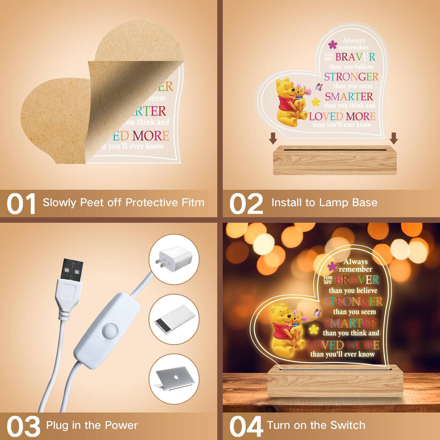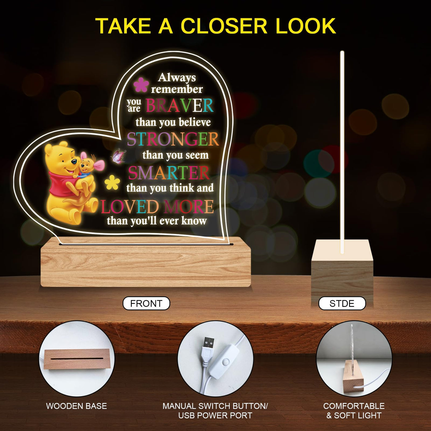 RYOTKIK Inspirational Night Lamp with Pooh Bear Cartoon Design Night Light, Inspirational Gifts for Birthday Christmas Graduatio