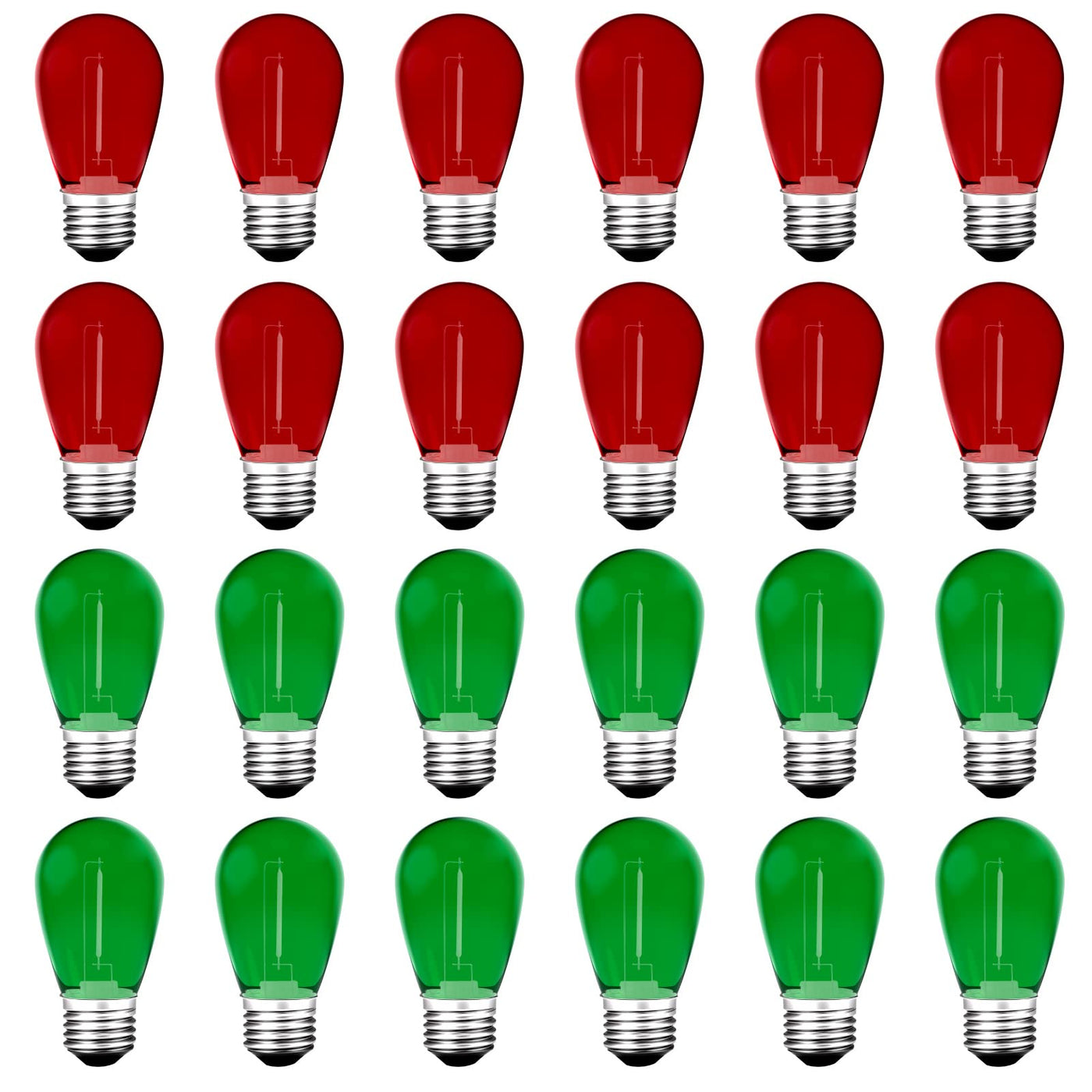 S14 colored LED String Light Bulbs, 24Pack 1 Watt Plastic Shatterproof Waterproof Outdoor Indoor Replacement Light Bulbs for Home Decor, E26 Medium Screw Base, Red and green christmas Light Bulbs