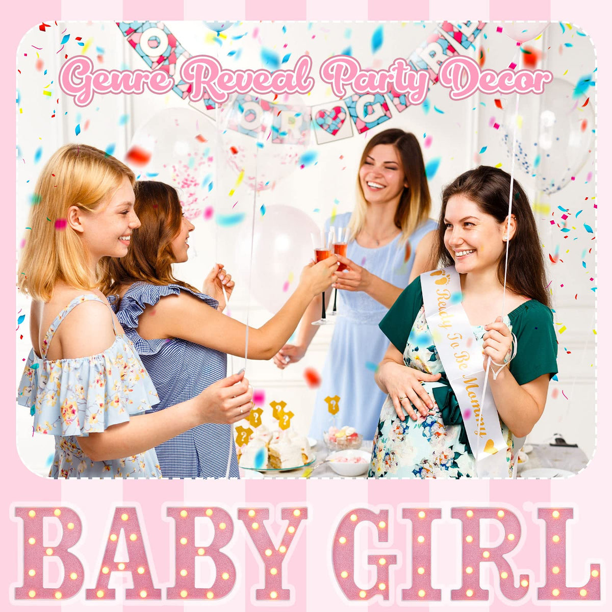 Sacubee Set of 8 Pink Baby Shower Decoration for Girl Baby LED Letters for Baby Shower Light up Letter Battery Operated Baby Let