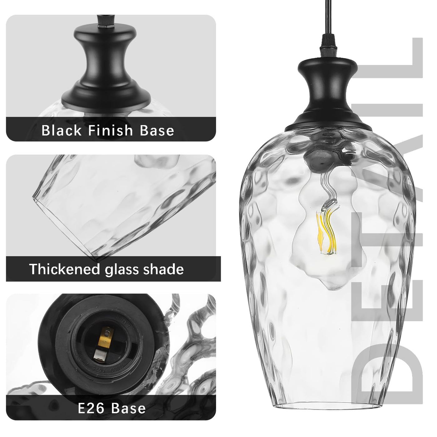 Saduenfr Glass Pendant Lights Kitchen Island, 1-Light Black Pendant Light Fixtures With Hand-Blown Clear Glass, Farmhouse Hangin