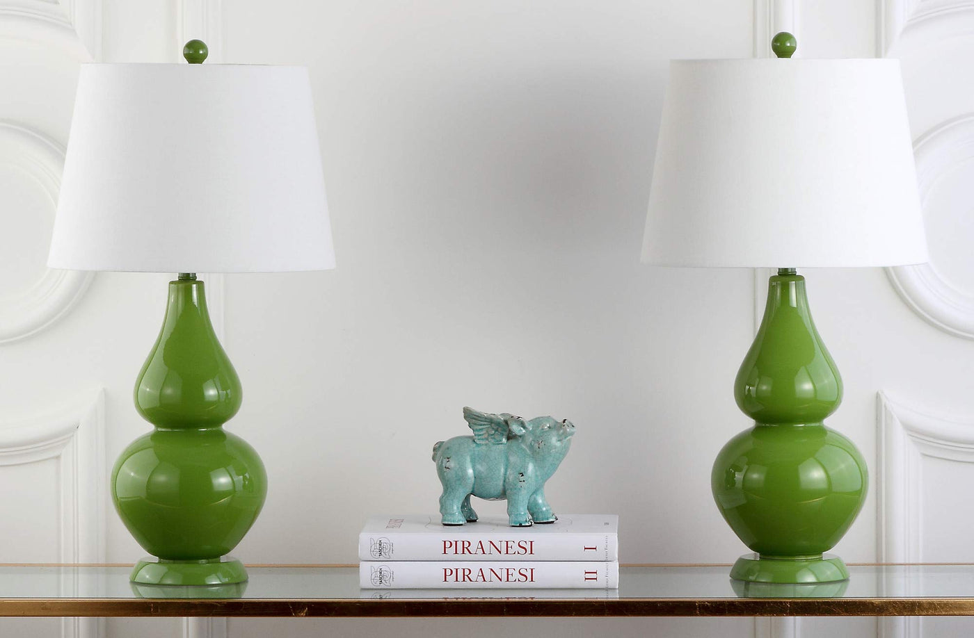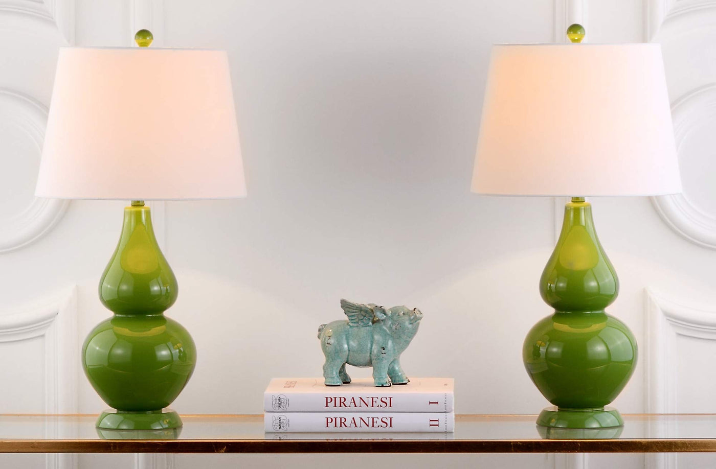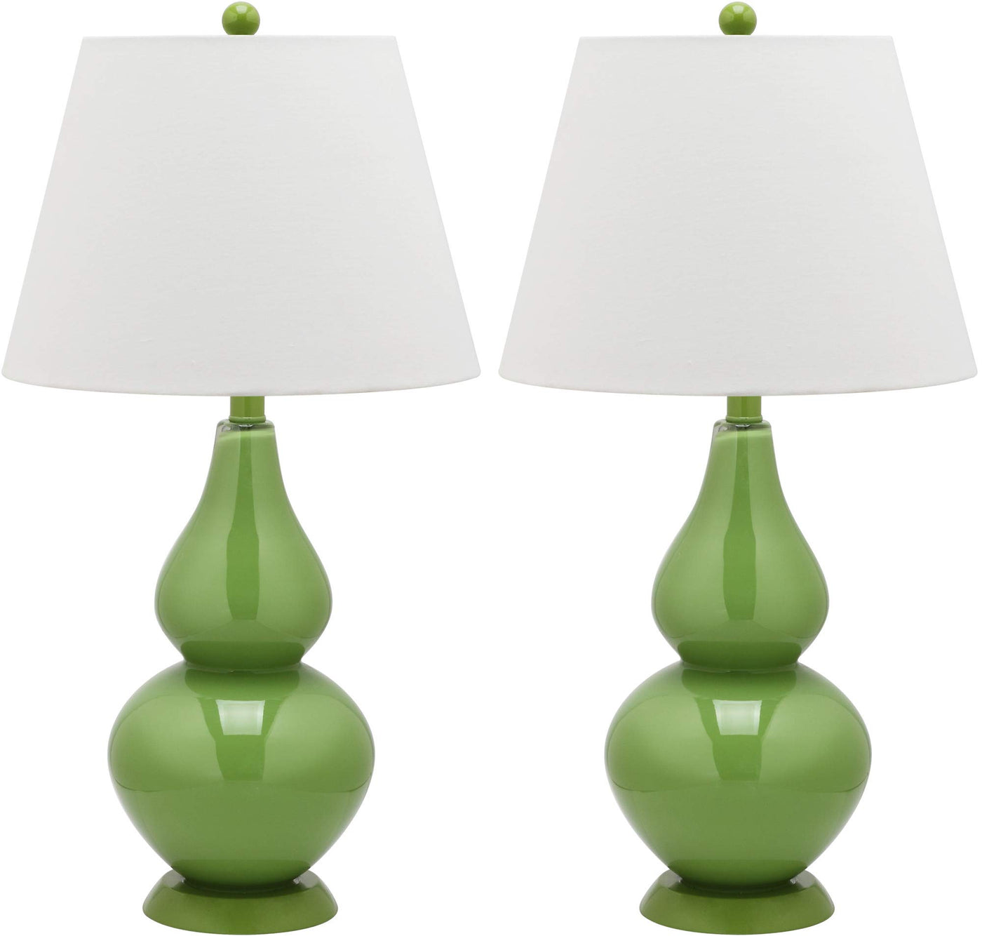 Safavieh Cybil Green Double Gourd Glass Table Lamp Set Of 2 For Bedroom & Living Room