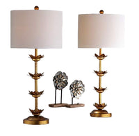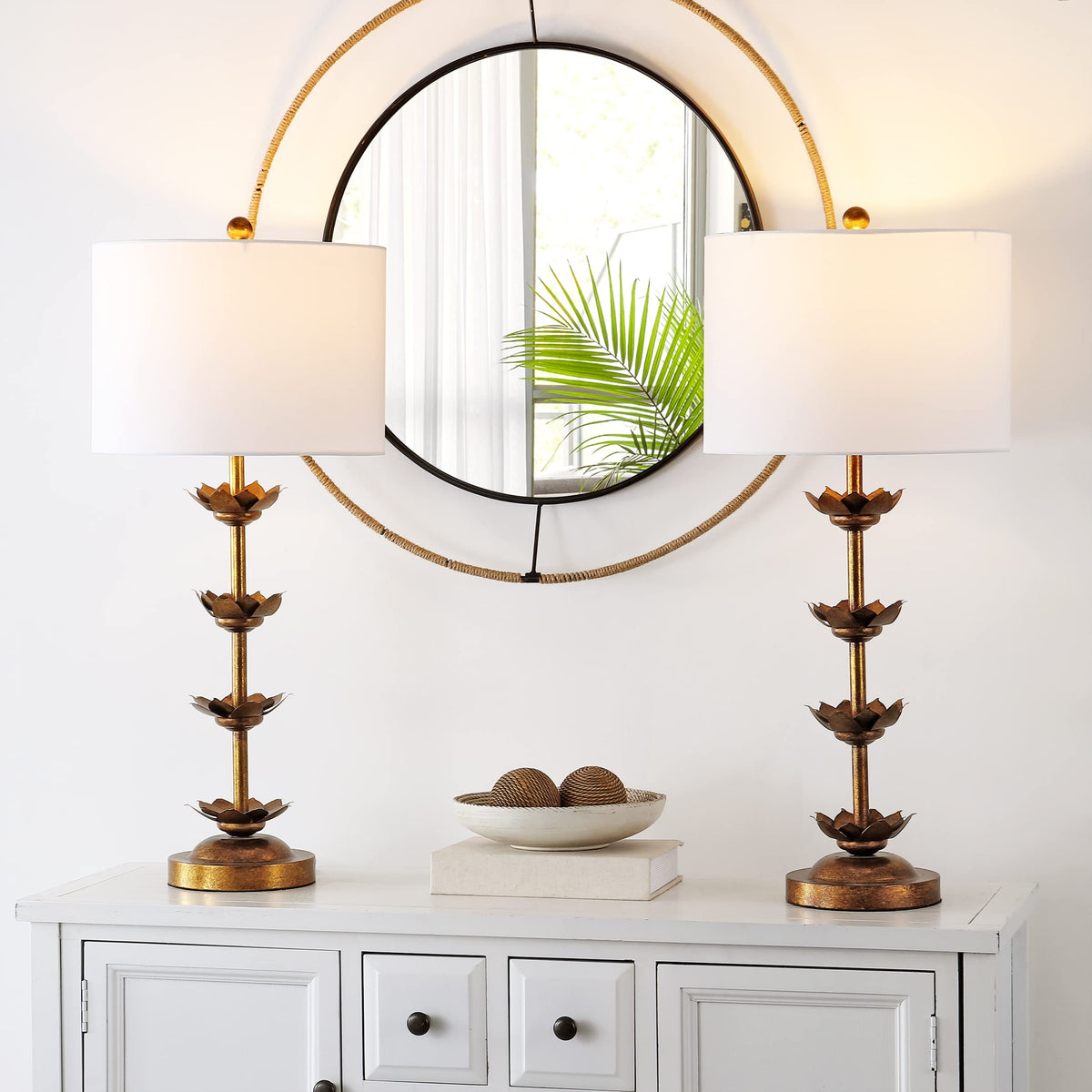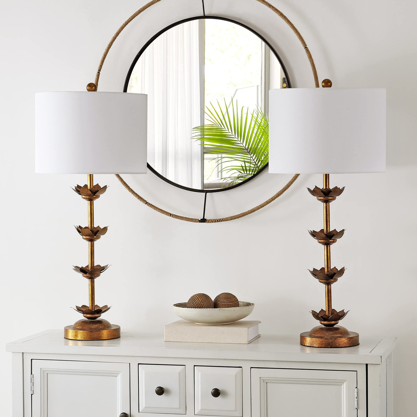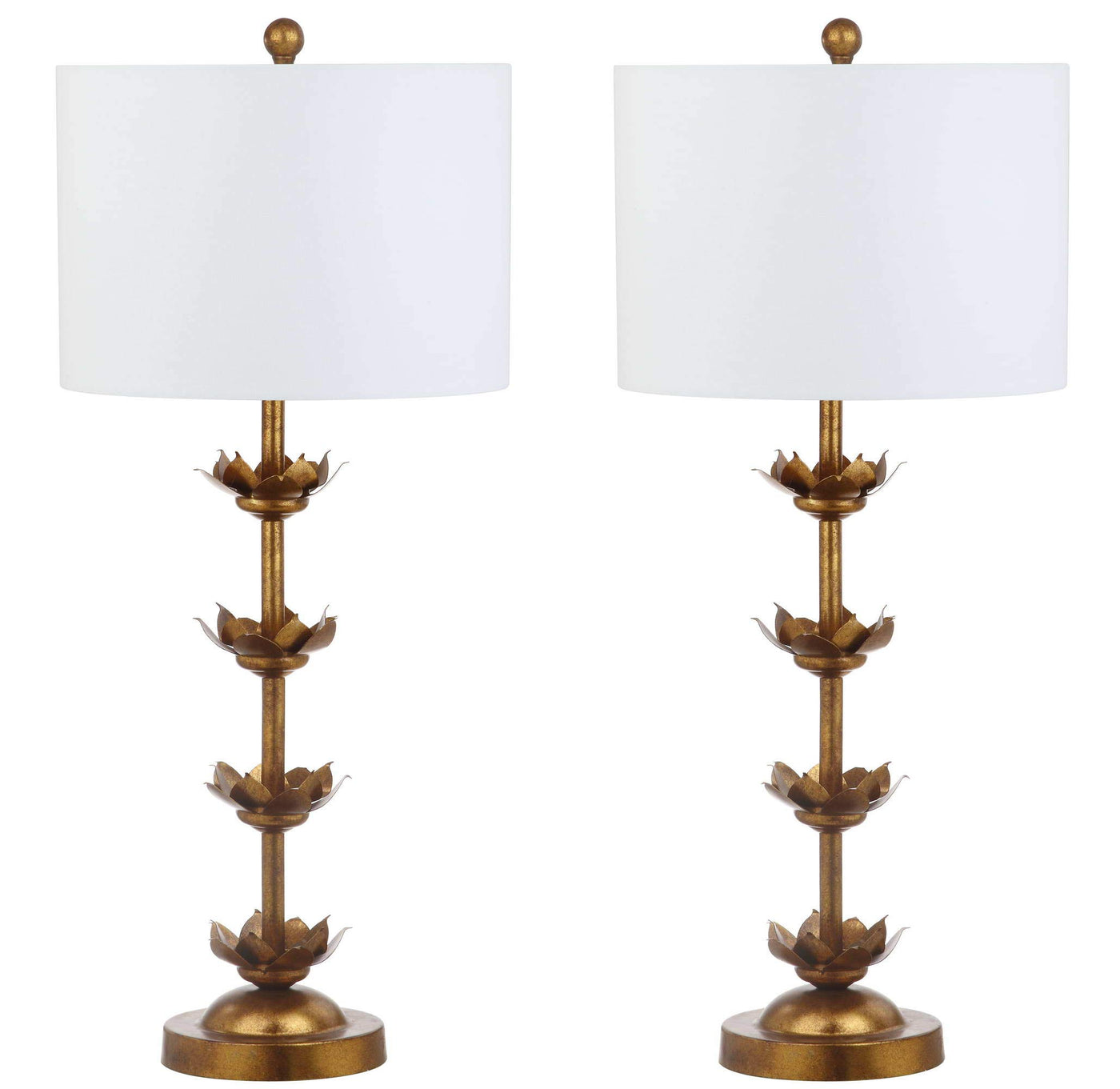Safavieh Lani Antique Gold Leaf 32" Table Lamps Set Of 2 With Led Bulbs - White Metal Finish