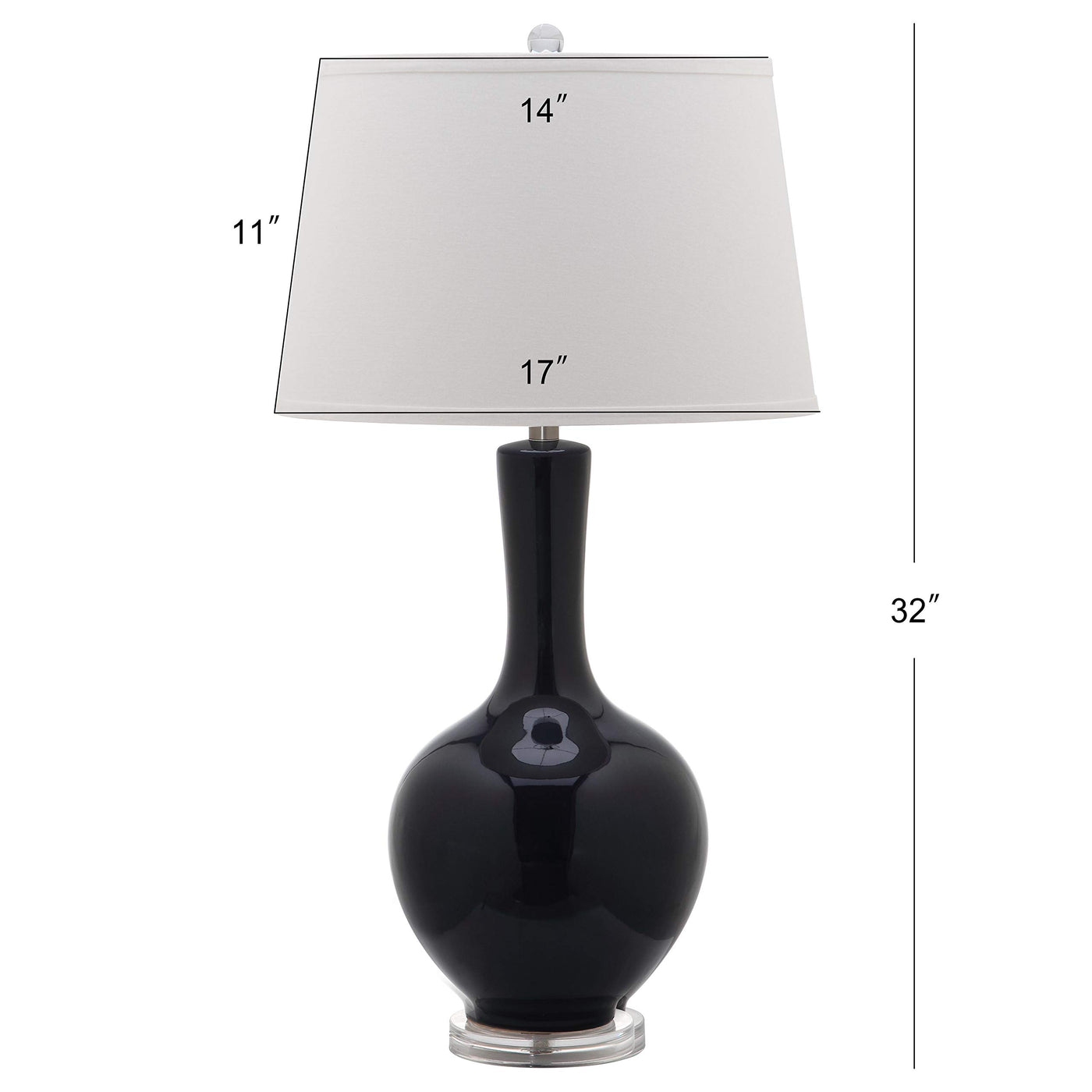 Q: What size is the Safavieh Blanche Gourd Table Lamp?A: The lamp has a height of 32 inches and a width of 17 inches, making it a striking addition to your decor.
