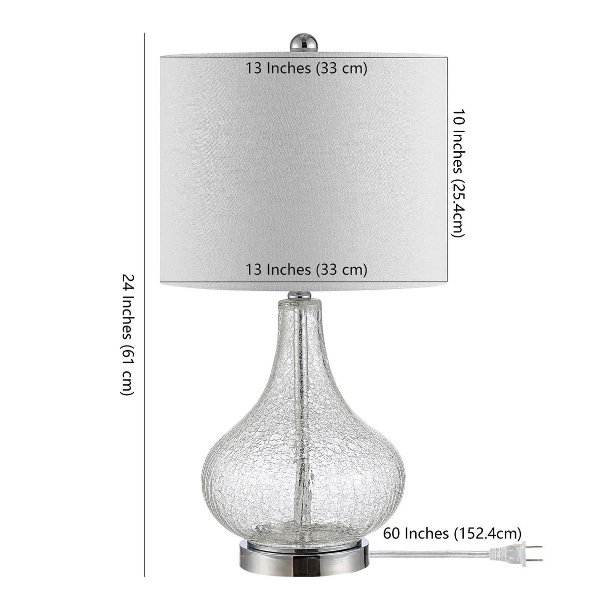 Q: What are the dimensions of the SAFAVIEH Brooks Clear Glass Table Lamp?A: The SAFAVIEH Brooks Clear Glass Table Lamp has full dimensions of 13 inches wide, 13 inches deep, and 24 inches high, making it an ideal size for bedroom nightstands, living room side tables, or home office desks.