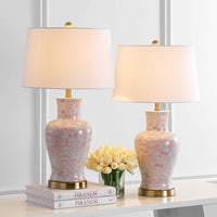Safavieh Lighting Collection Calli Pink/ White Chinoiserie 28-Inch Bedroom Living Room Home Office Desk Nightstand Table Lamp Se