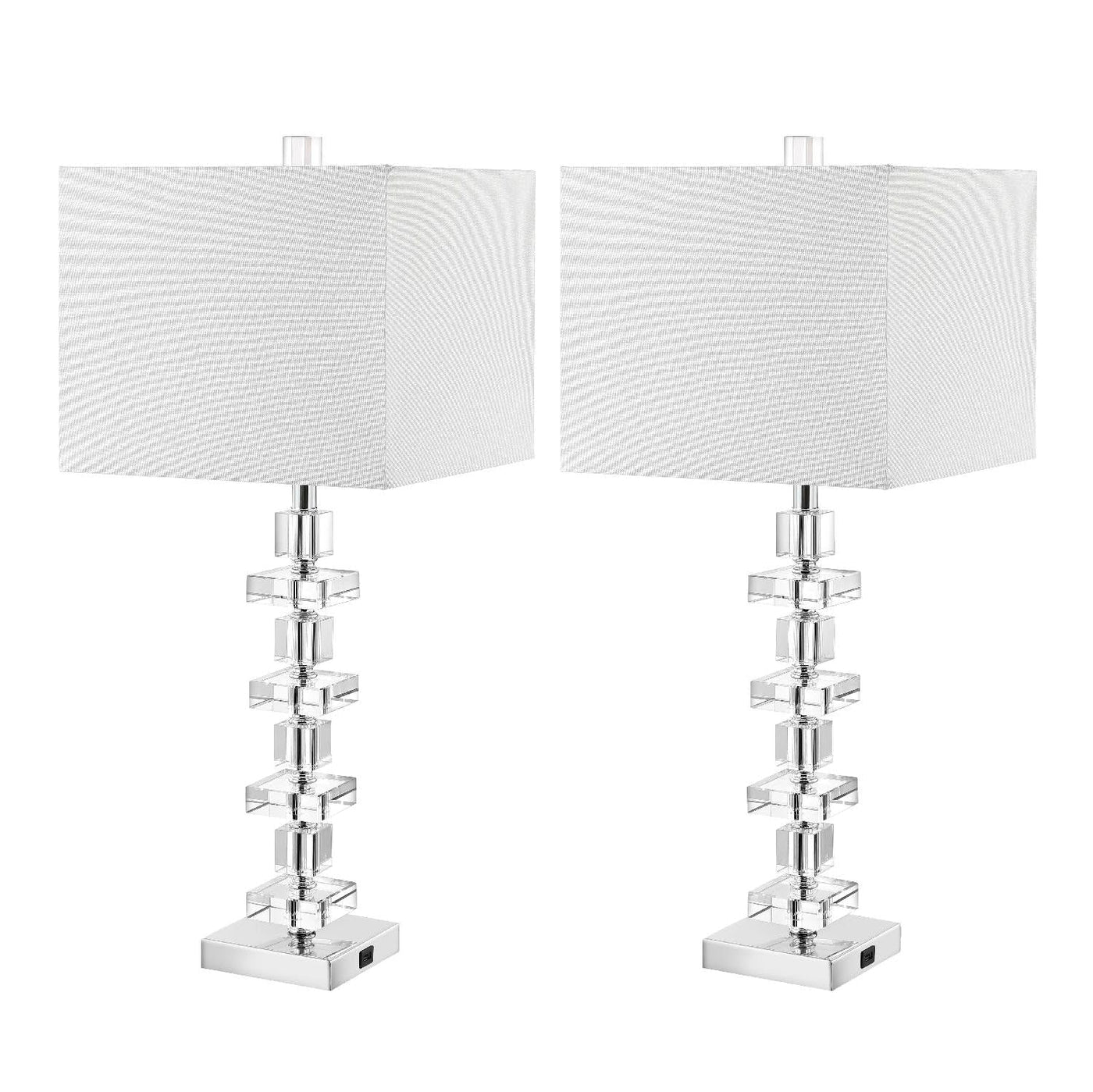 Safavieh Lighting Collection Deco Clear/Chrome Crystal 29-Inch Table Lamp Set Of 2 With Usb Charging Port (Led Bulbs Included)