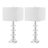 Alternating Large And Small Blocks Of Solid Crystal Create A Dramatic Statement In This Set Of Two Deco Crystal Table Lamps. With Chrome Fittings And Contemporary Rectangular Cotton Shade, Graphic Geometric Forms Recall The Glamour Of Art Deco Style. Our Charming Table Lamp Is Available Featuring A Built-In Usb Port To Keep Your Devices Charged.