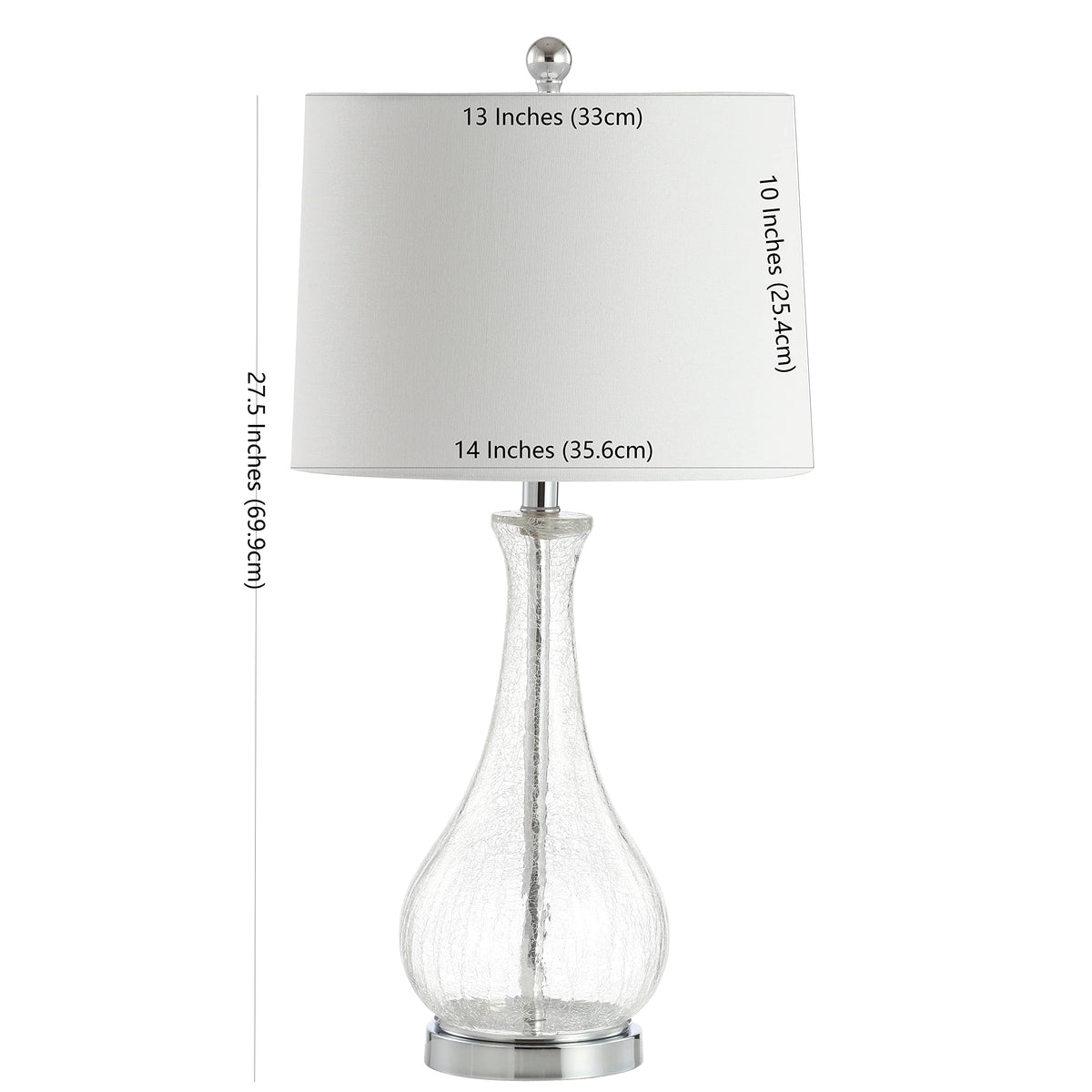 Designed To Update Any Living Room, This Contemporary Table Lamp Blends Seamlessly Into Any D Cor. Its Clear Glass Body Reflects The Light, Ethereal Glow Filtered Through Its Complementary Cotton Barrel Shade. Its Chic Chrome Finish Adds The Perfect Final Touch.