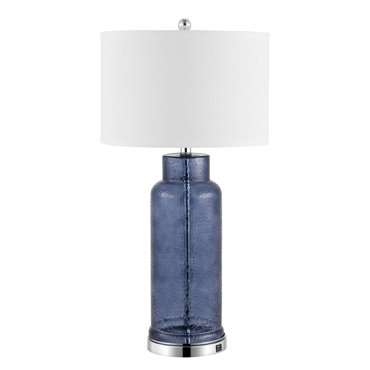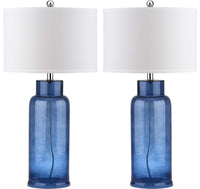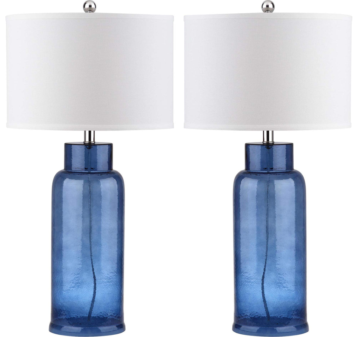 Safavieh Lighting Collection Glass Bottle Blue 30-Inch Bedroom Living Room Home Office Desk Nightstand Table Lamp Set Of 2 (Led