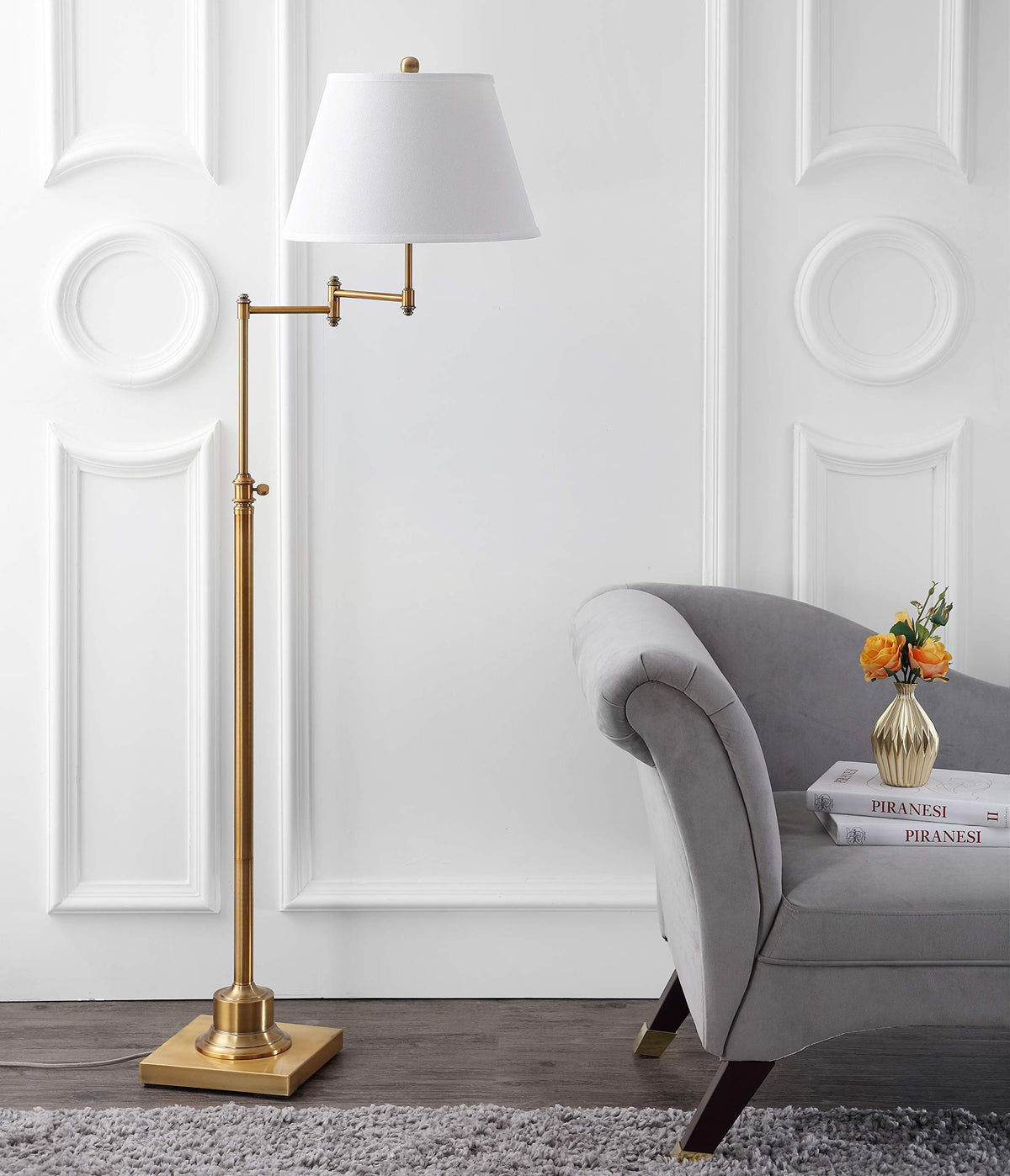Safavieh Lighting Collection Ingram Swivel Swing Arm Gold 60-Inch Living Room Bedroom Home Office Standing Floor Lamp (Led Bulb