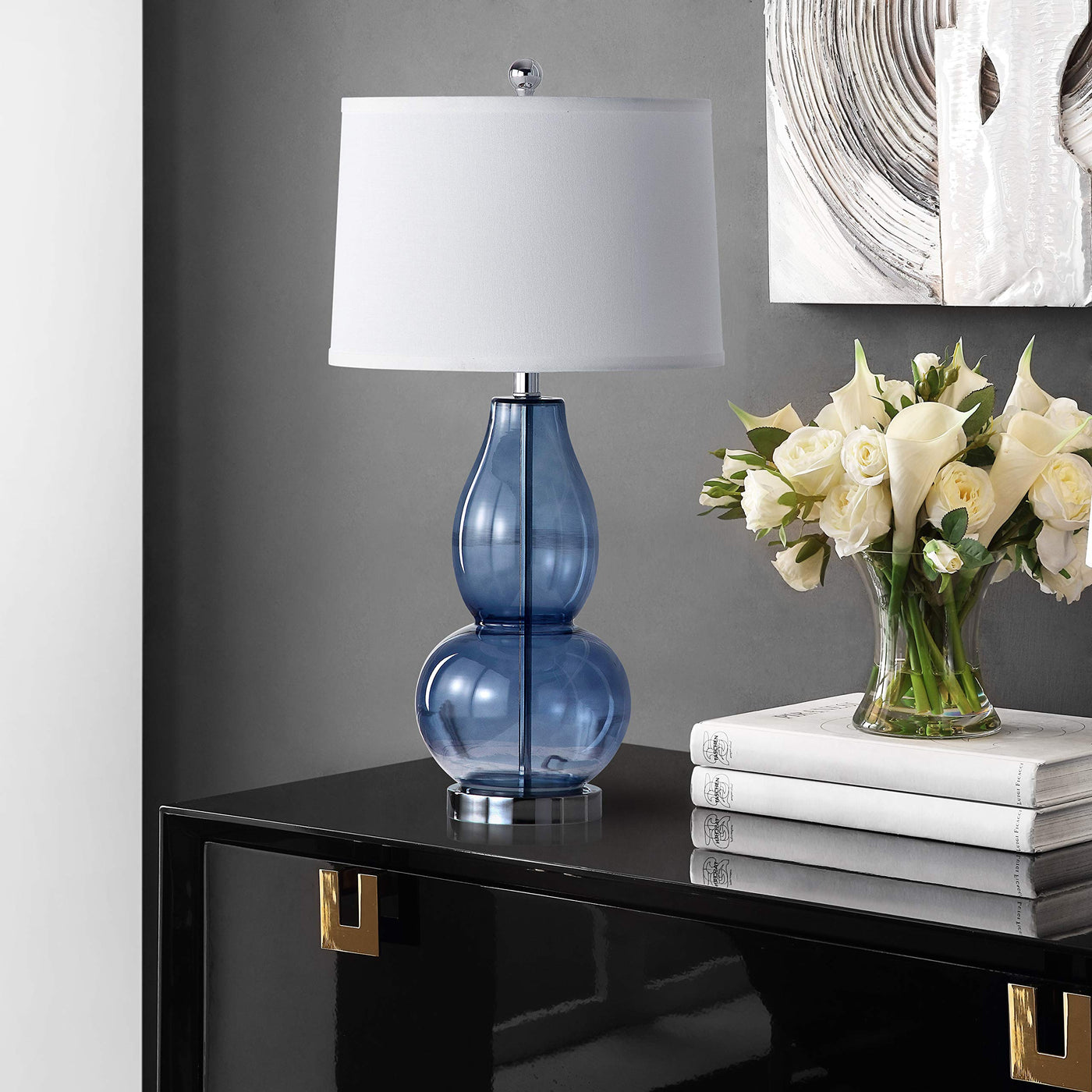 Safavieh Lighting Collection Mercurio Blue Glass Double Gourd 28-Inch Table Lamp Set Of 2 With Usb Charging Port (Led Bulbs Incl