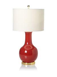 The Paris Lamp Is Sure To Illuminate Any Room With Elegance And Style. Its Classic Gourd Body Of Clear Red Glazed Ceramic Is Accented With Gold-Finished Metal Neck And Base, And Topped With A Hard White Drum Shade Of Cotton.