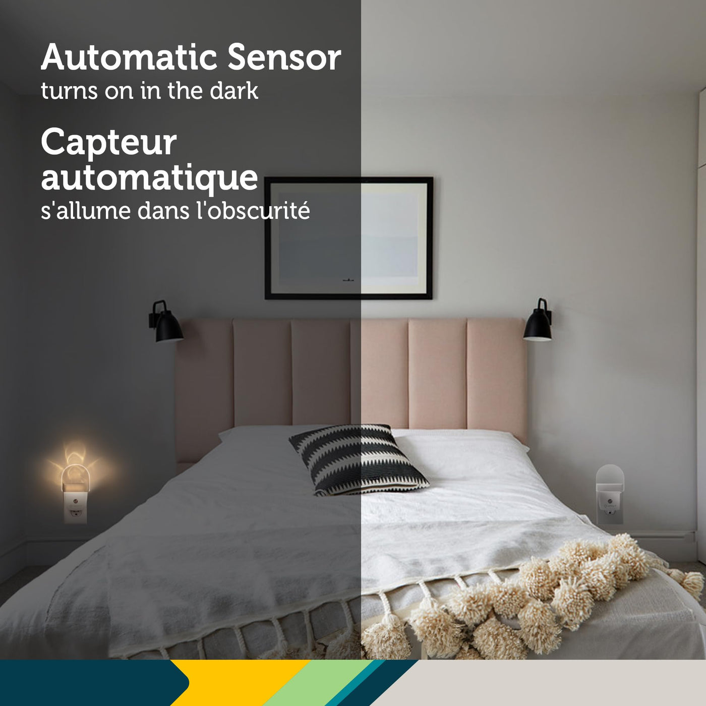 The information below is per-pack only | CHILD FRIENDLY DESIGN: Nightlight is cool to the touch | AUTO SENSOR: Automatically turns on in the dark and off when ample light reappears | COST EFFECTIVE: LED lights last 25 times longer than standard light bulbs and cost less to operate | 2 PACK: Offers double the lighting solution for your home