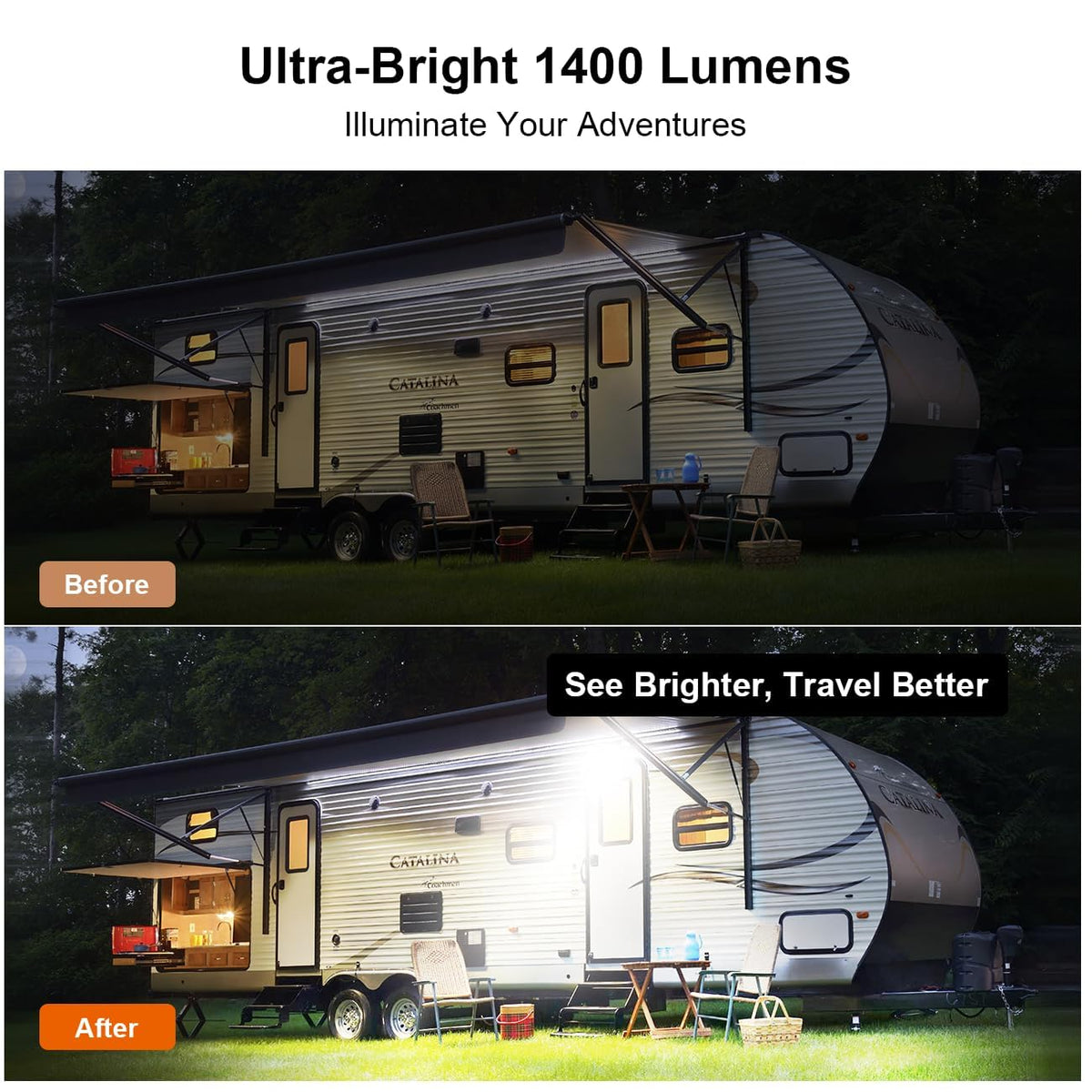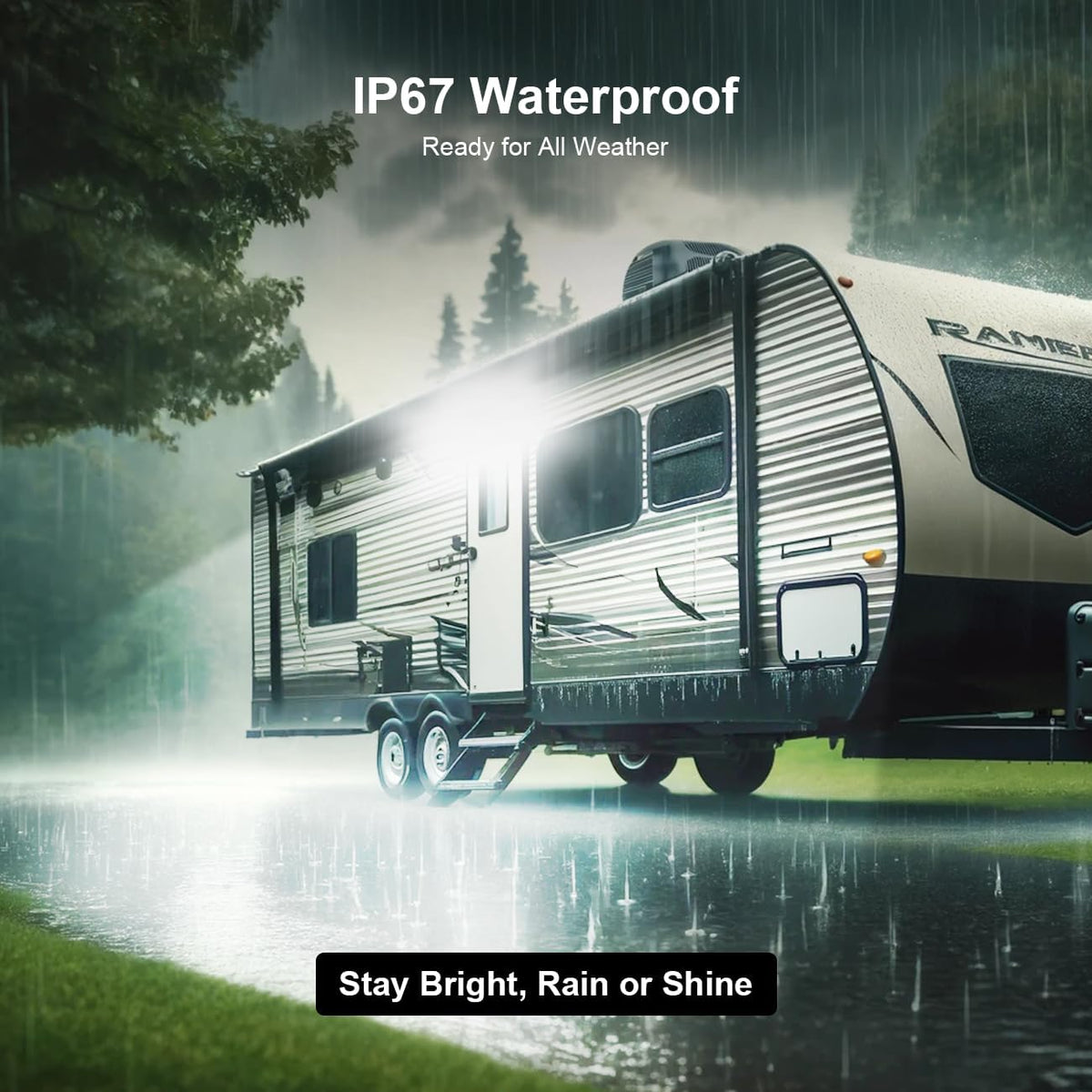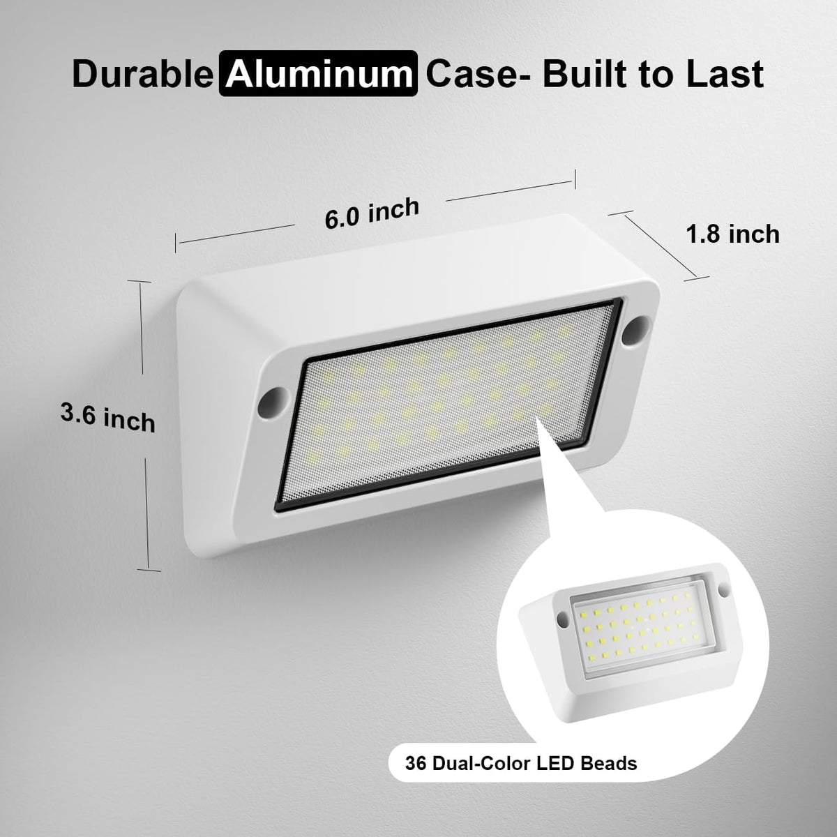 Constructed with well-made aluminum alloy, the Safoner RV Porch Light ensures long-lasting performance and corrosion resistance. It features 36 dual-color LEDs that deliver an impressive 1400 lumens of brightness, making it a reliable choice for illuminating your RV exterior. The light operates within a voltage range of 12-30V, accommodating different RV electrical systems. With its compact dimensions of 5.9 x 3.5 x 1.9 inches, this portable light fits seamlessly into various RVs, campers, and travel trailers. It is designed without an onboard switch, allowing it to operate through your RV’s existing interior switch once wired to the power system.