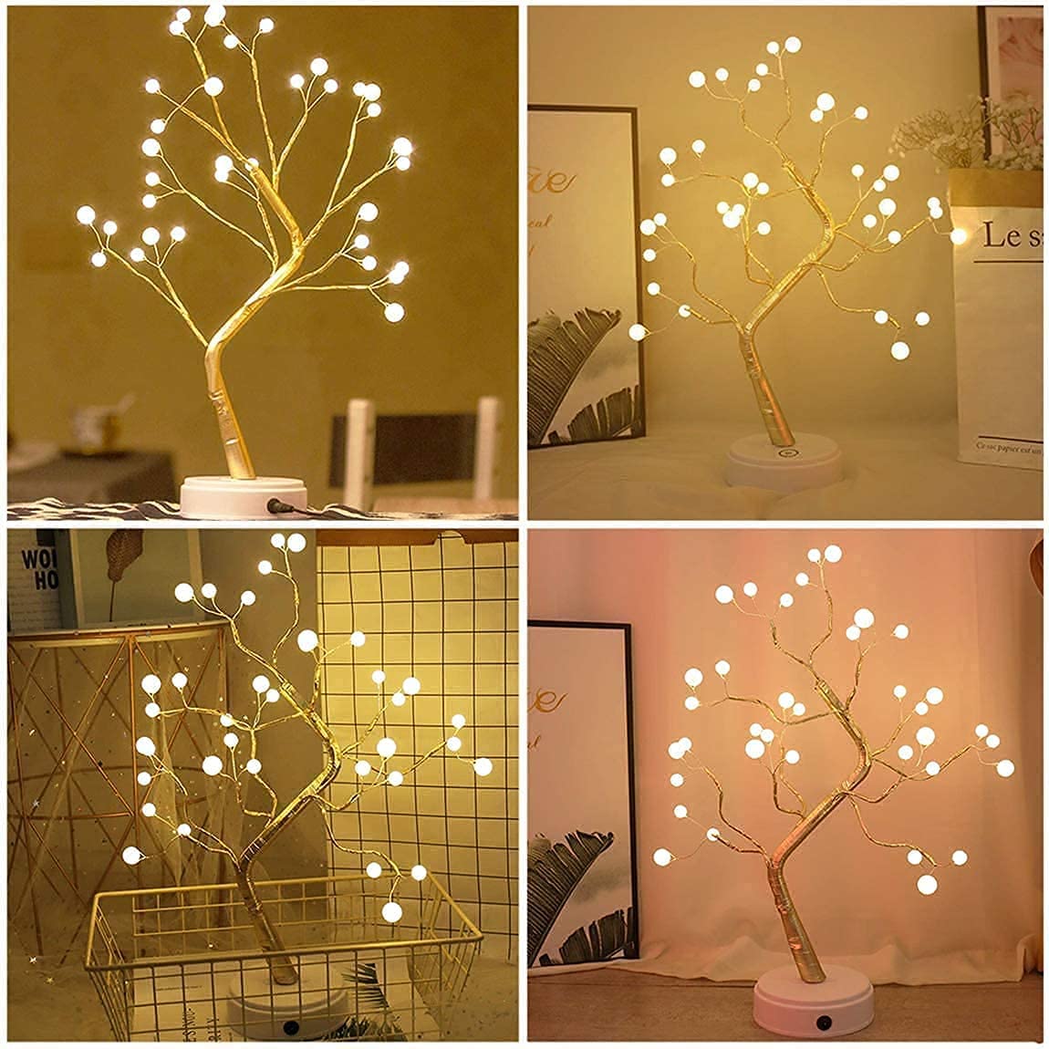 SAIELLIN Bonsai Led Light Desk Tree Lamps for Home Decoration Items, Battery Powered OR USB Adapter Table Decor Pearl LED Lights